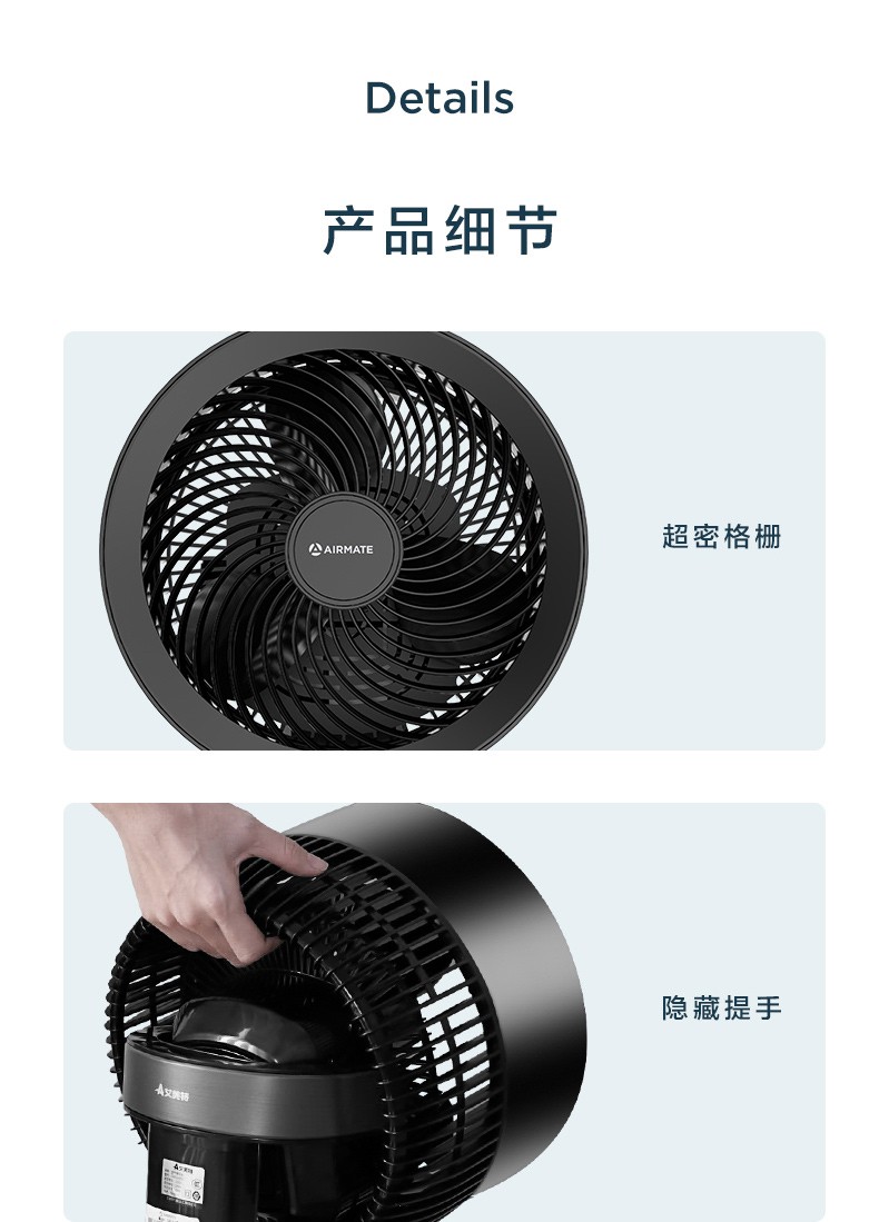 艾美特 空气循环扇家用电风扇空气对流式摇头涡轮换气扇大风量落地扇风扇CA23-RD7 单位:把