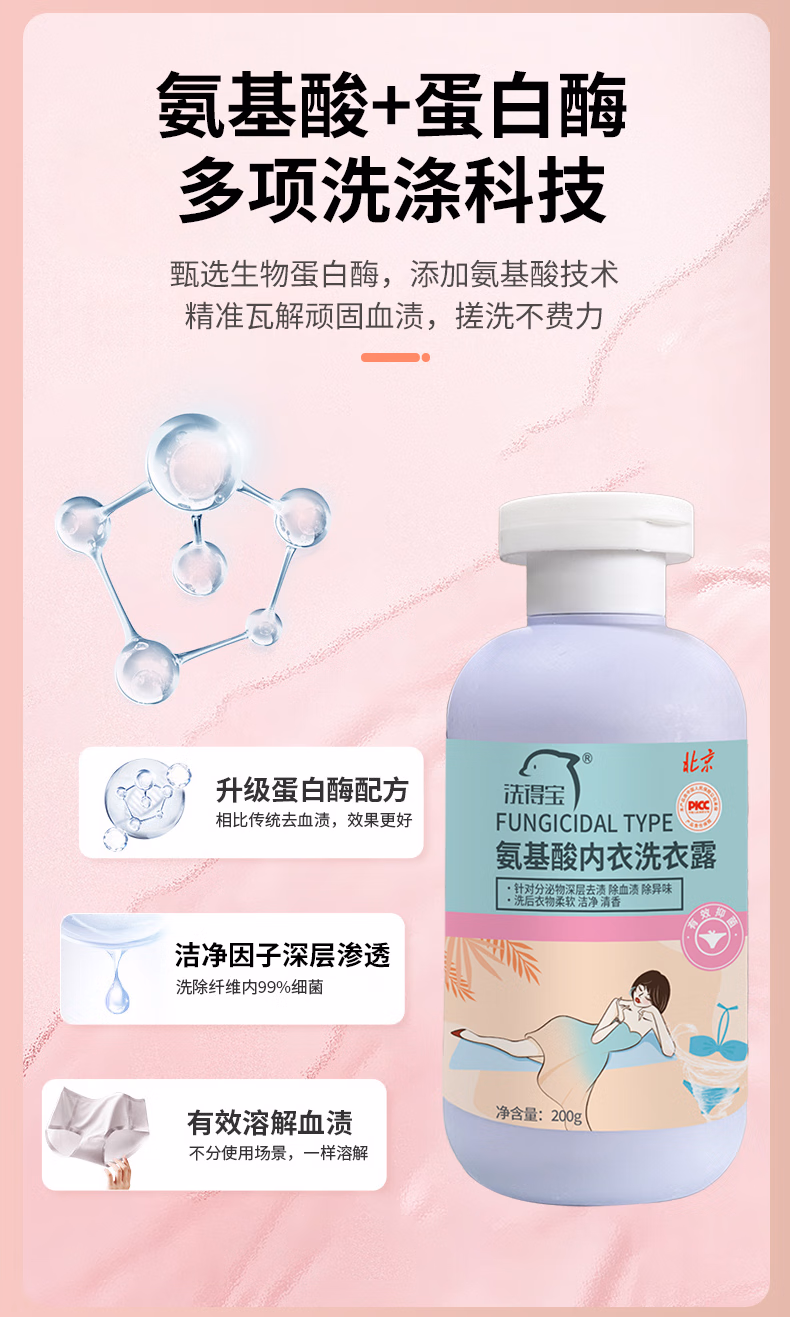洗得宝 200g/瓶 除菌型 祛除血渍污渍洗衣液 氨基酸内衣洗衣露 (计价单位:瓶)