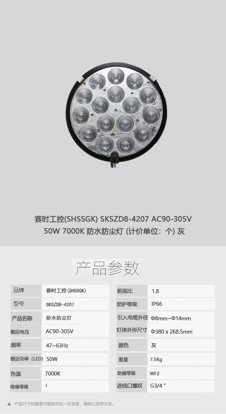 赛时工控(SHSSGK) SKSZD8-4207 AC90-305V 50W 7000K 防水防尘灯 (计价单位:个) 灰