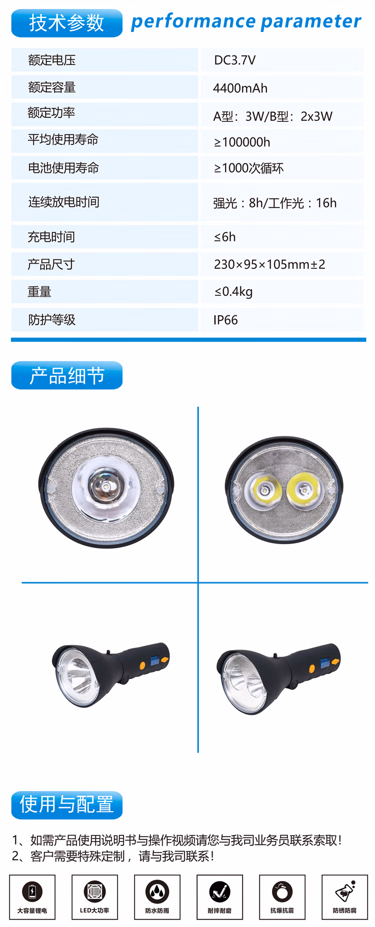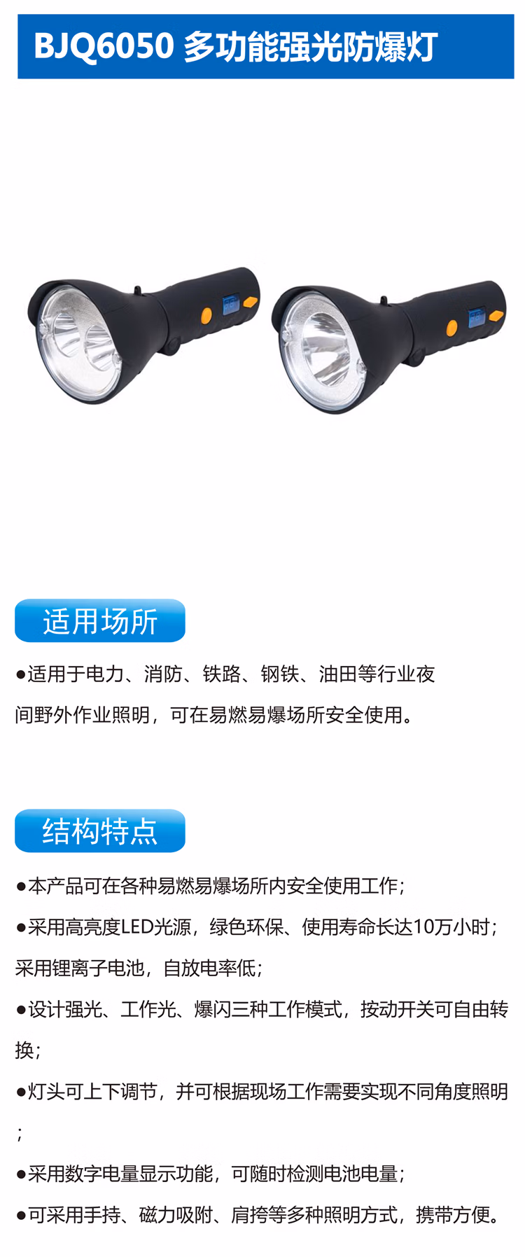 晶全照明 BJQ6050 DC3.7V 2*3W Exib IIC T6 充电可折叠磁吸手持远射防爆手电筒 (计价单位:个) 黑色