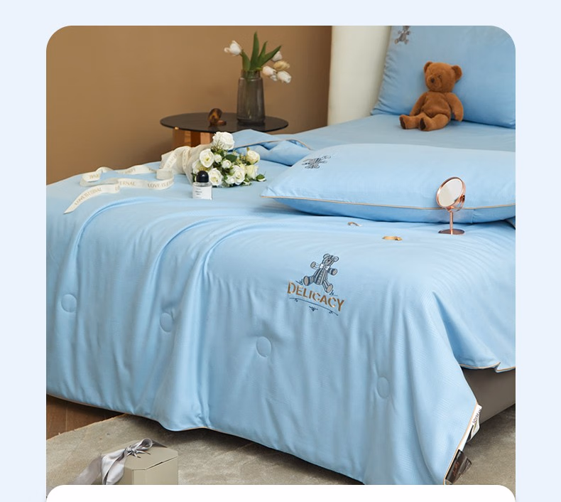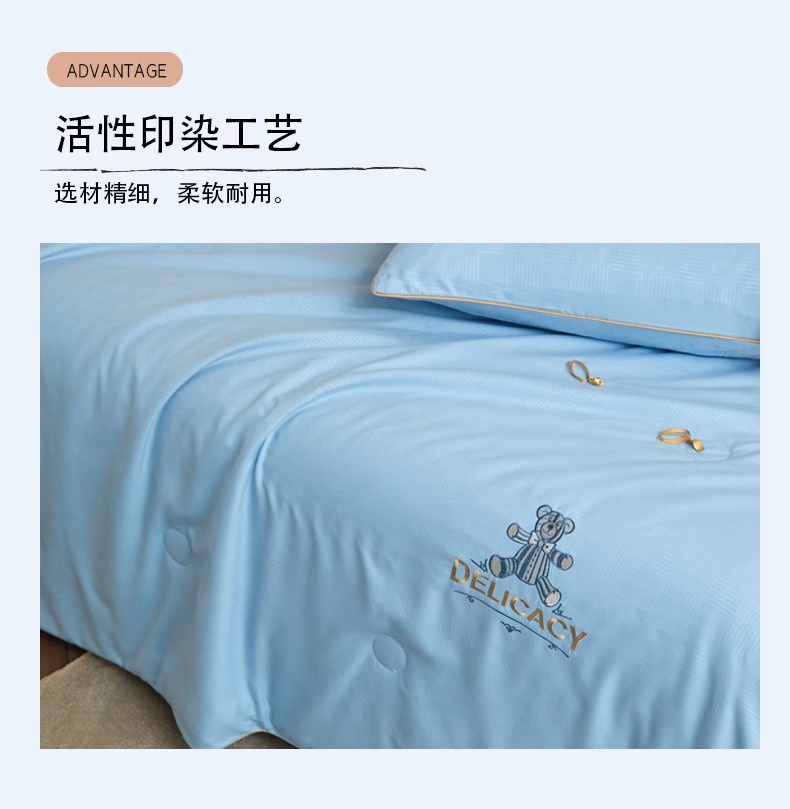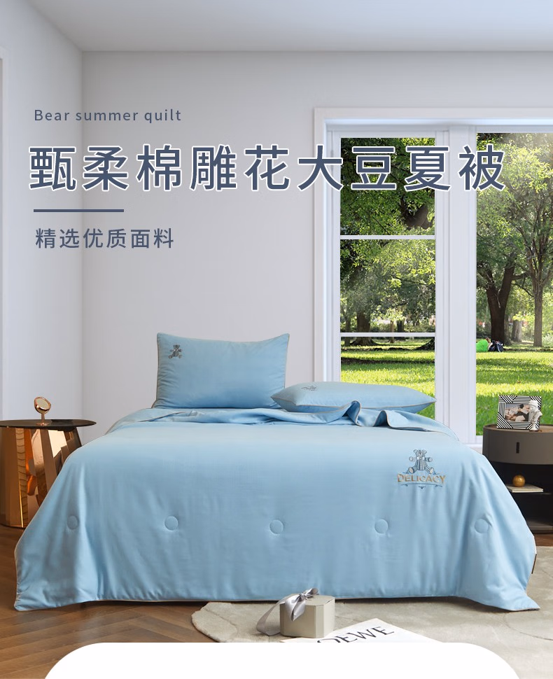 • 商品名称:弗切尔珀榕 甄柔棉雕花艾米熊系列大豆夏被(条) 艾米熊天蓝 150*200CM/FTDC220416