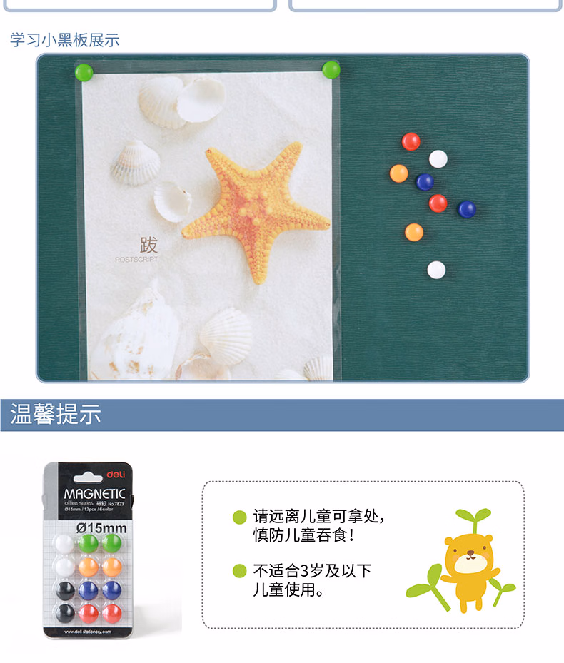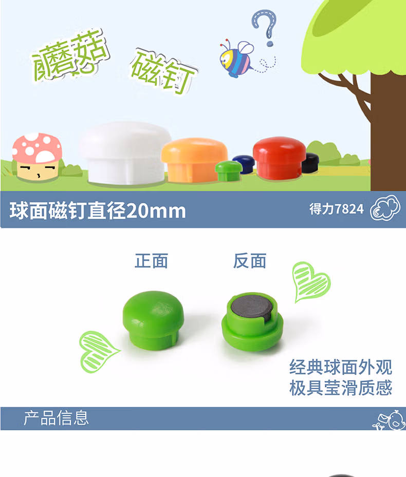 • 商品名称:得力(deli)白板配件20mm混色白板黑板写字板磁钉12支/卡7824
