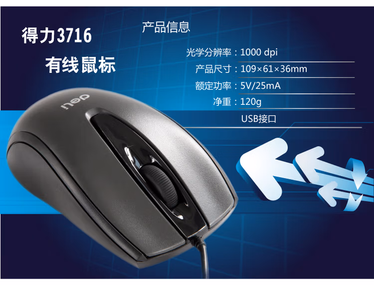 得力(deli) 3716 有线鼠标 (计价单位:个) 灰色