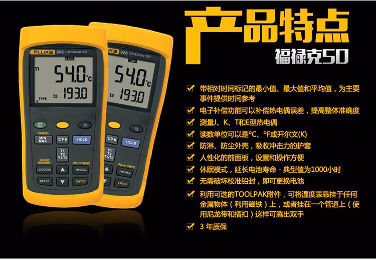 福禄克(FLUKE) FLUKE福禄克51-2 51-II接触式52-2 52-II测温仪5 51-II(自带1热电偶) 单位:台