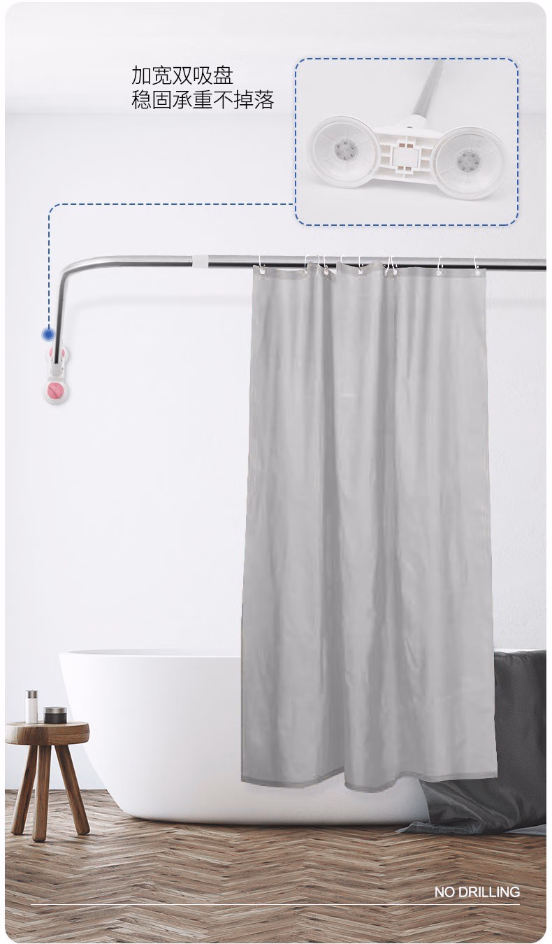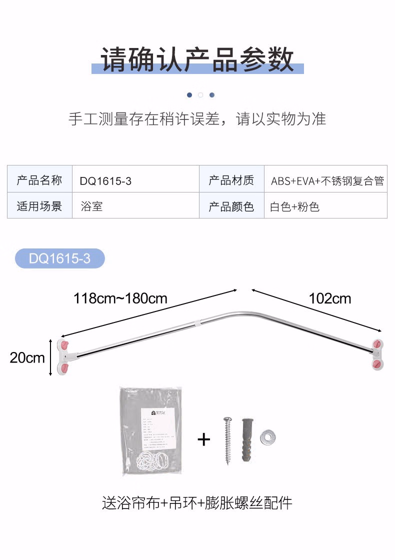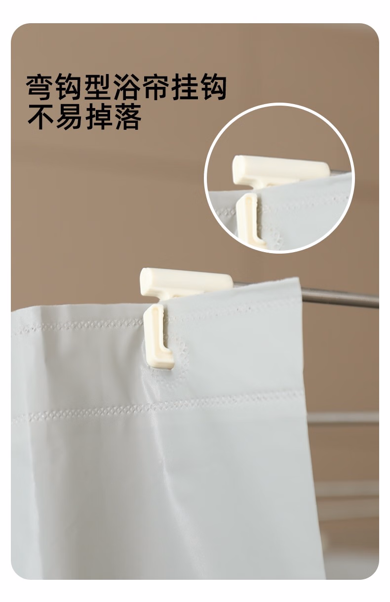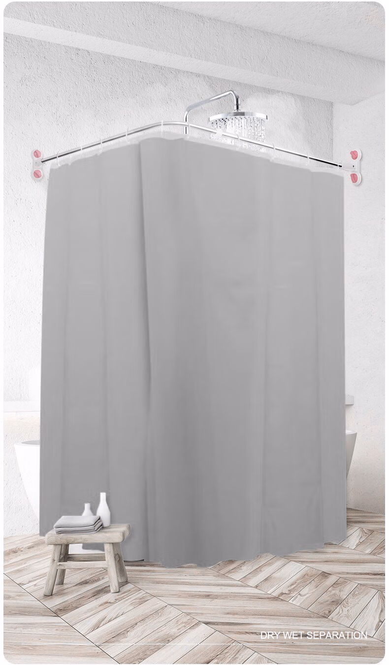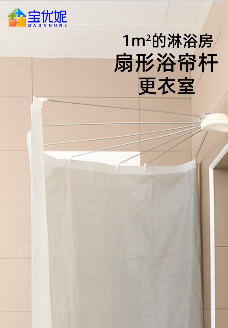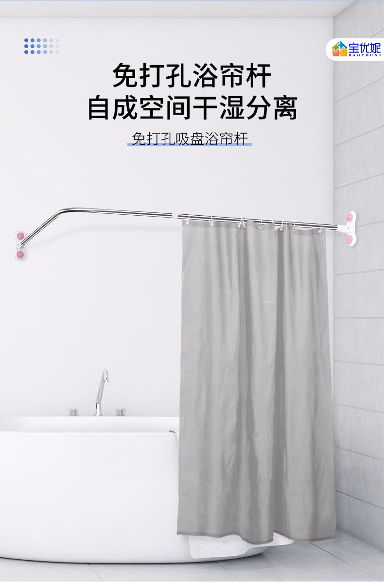 • 商品名称:宝优妮 浴帘杆弧形浴帘套装不锈钢免打孔转弯转角淋浴杆伸缩杆晾衣杆 弧型浴帘杆+浴帘1615-2