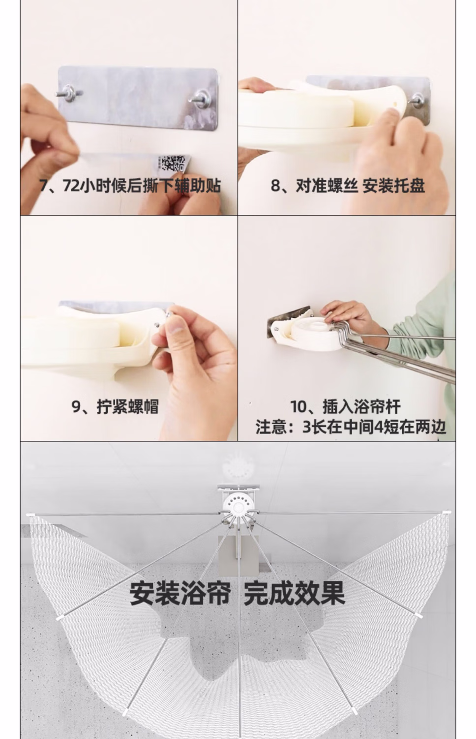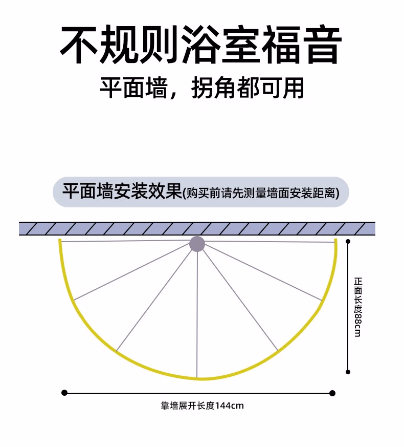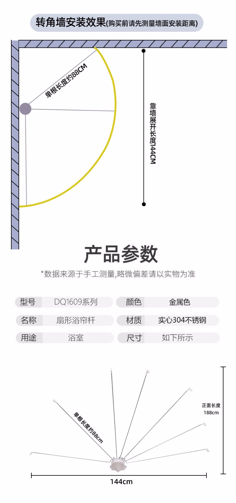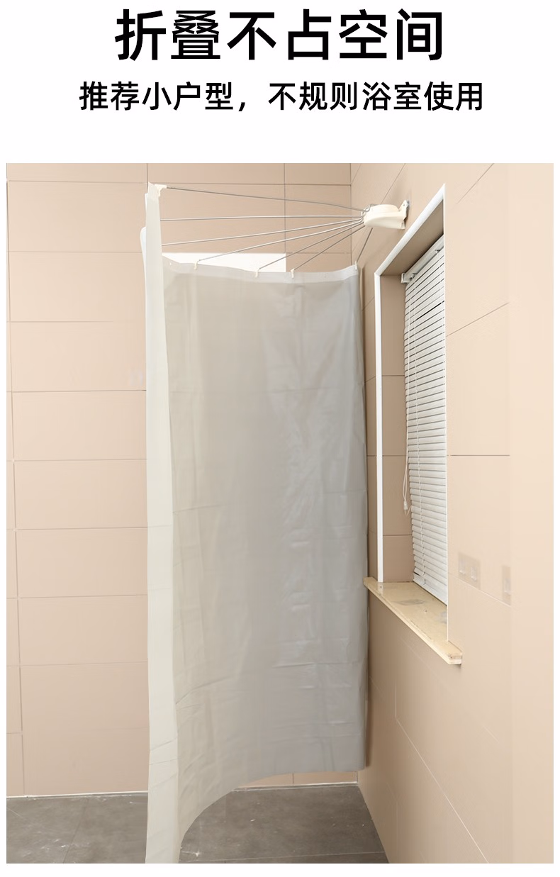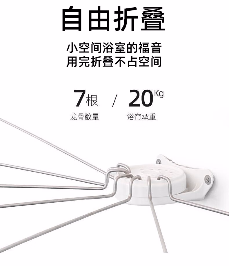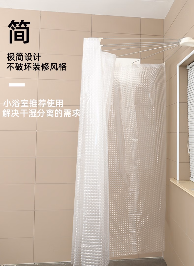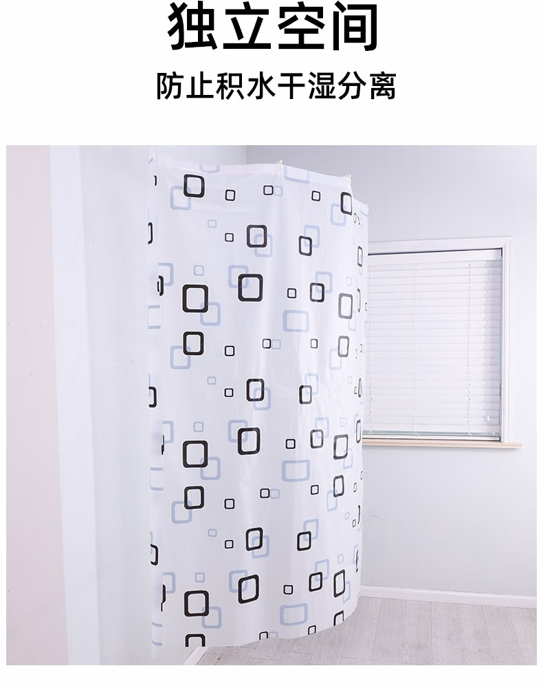 • 商品名称:宝优妮 浴帘杆弧形浴帘套装不锈钢免打孔转弯转角淋浴杆伸缩杆晾衣杆 弧型浴帘杆+浴帘1615-2