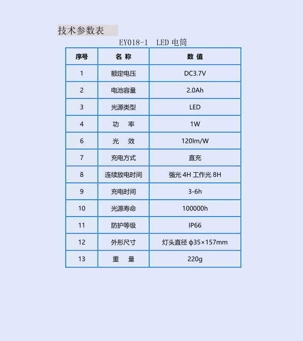 鄂远 EY018-1 6800K DC3.7V 防护等级IP66 电筒 (计价单位:个) 黑色