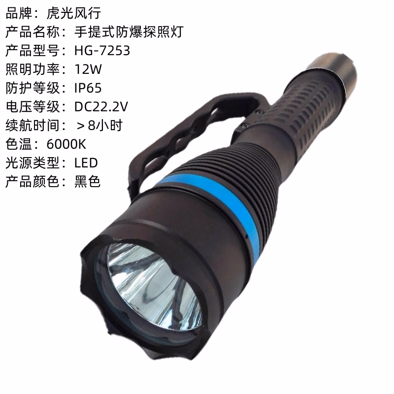 虎光风行 HG-7253 12W、IP65、续航时间>8小时、DC22.2V、6000K 黑色 手提式防爆探照灯 1.00 个/套 (计价单位:套) 黑色