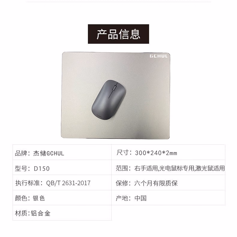 • 商品名称:杰储(GCHUL) D150 加大款铝合金双面 鼠标垫 (计价单位:个) 银色