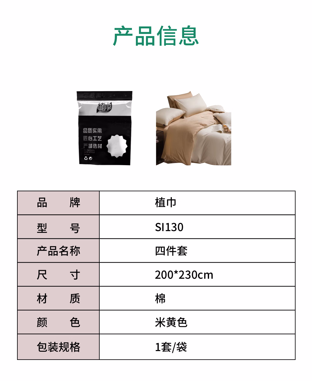 植巾 SI130 200*230cm 亲肤纯色精品 床上四件套 床上套件 (计价单位:套) 米黄色