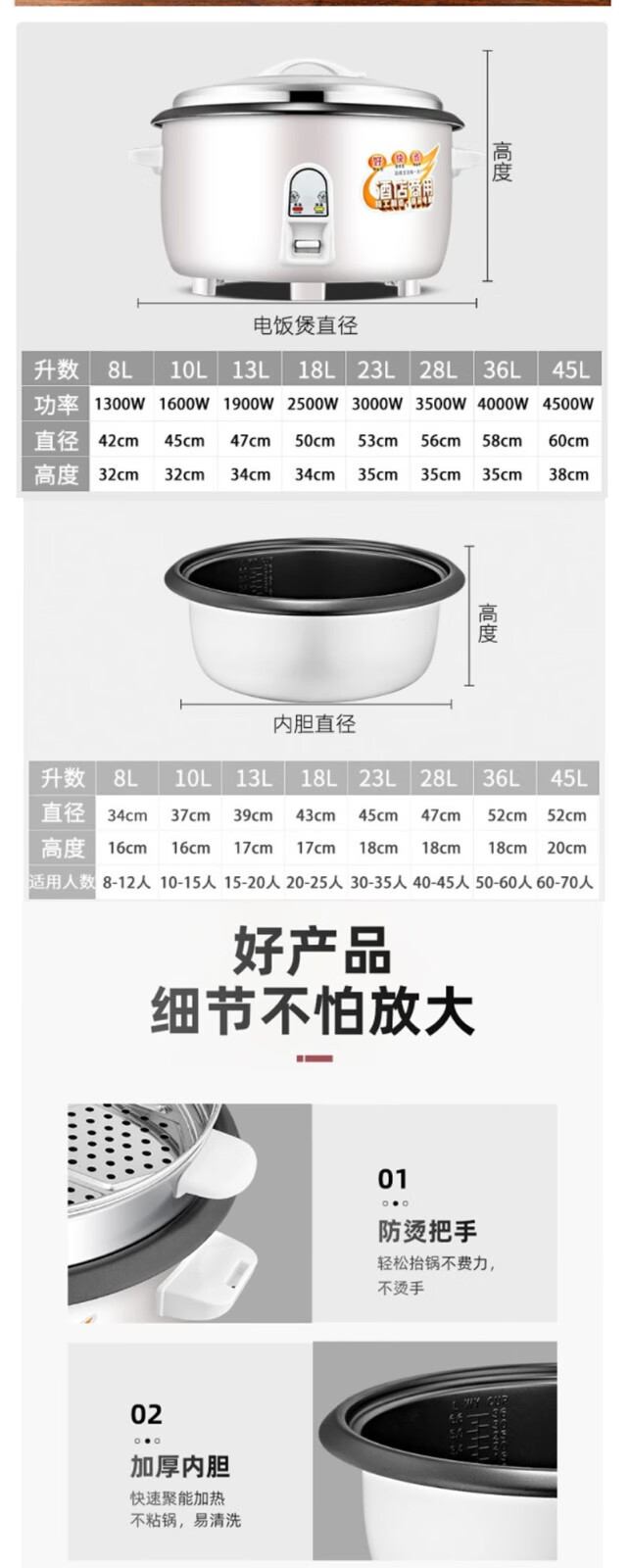 晟泰邦 大容量食堂酒店商用老式电饭煲加厚10L不粘10-15人 单位:个