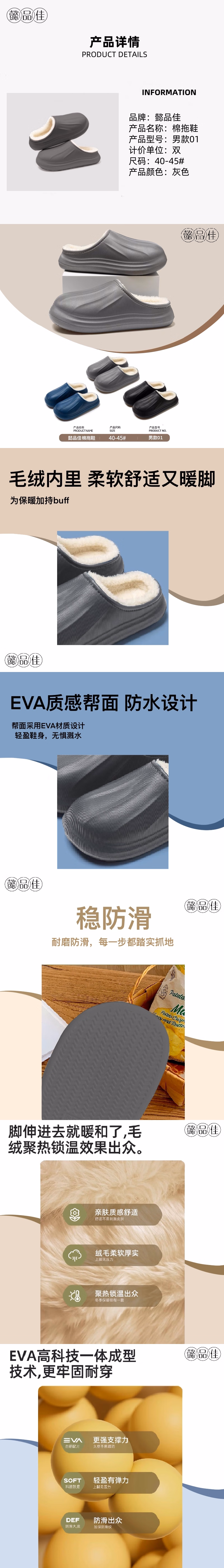 懿品佳 男款01 室内拖鞋 (计价单位:双) 灰色