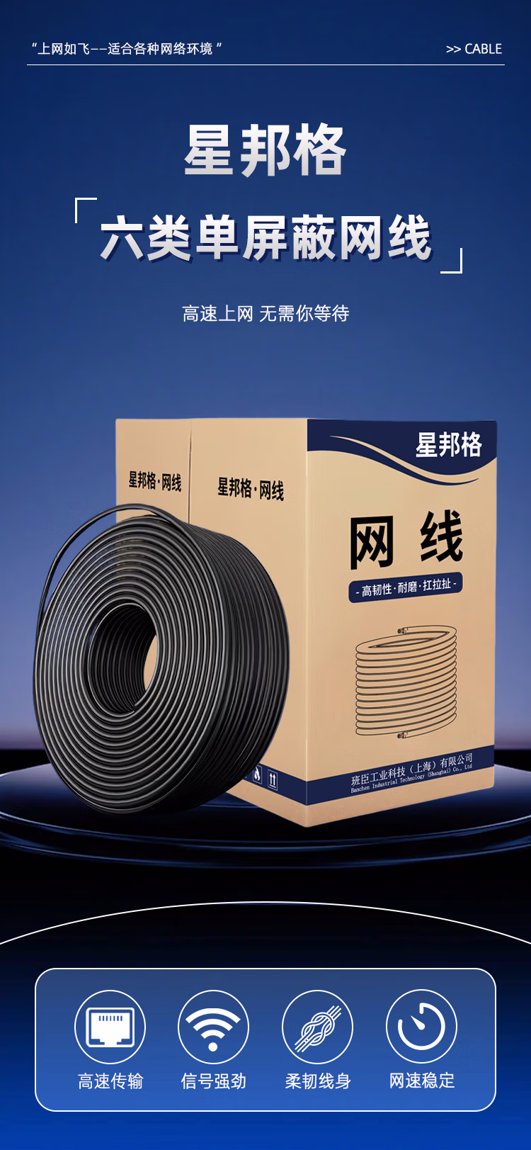 • 商品名称:星邦格X3010 六类单屏蔽网线 305米/箱 (计价单位:箱)黑色