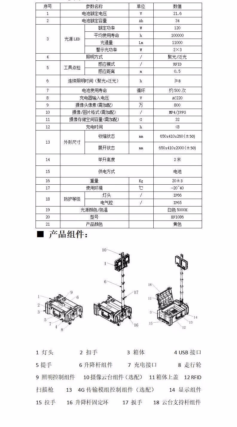 • 商品名称:熠飞(EEEFEI)多功能移动照明系统EF1086