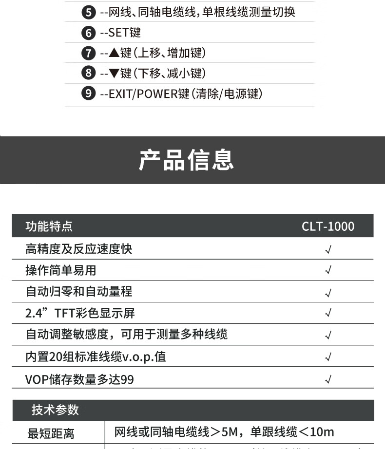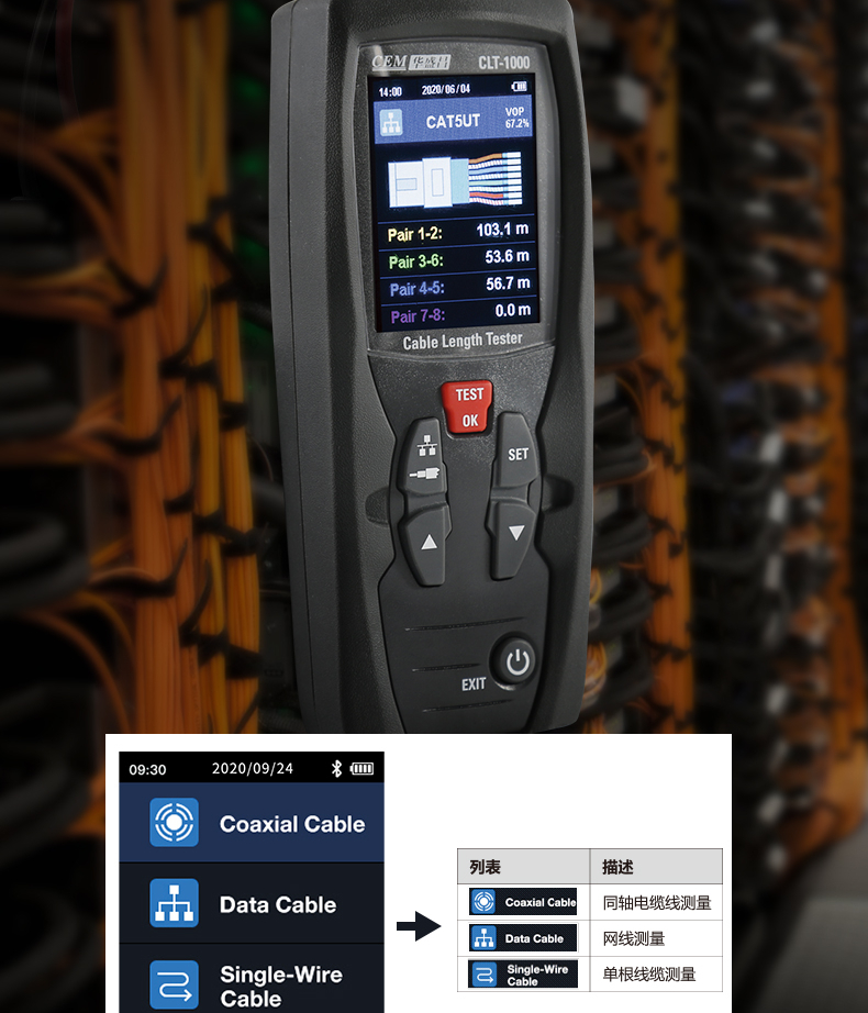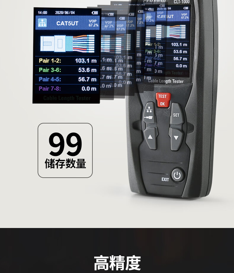 华盛昌(CEM)CLT-1000高精度电缆长度测试仪 多功能工业电缆网线探测仪 自动量程 单位:台