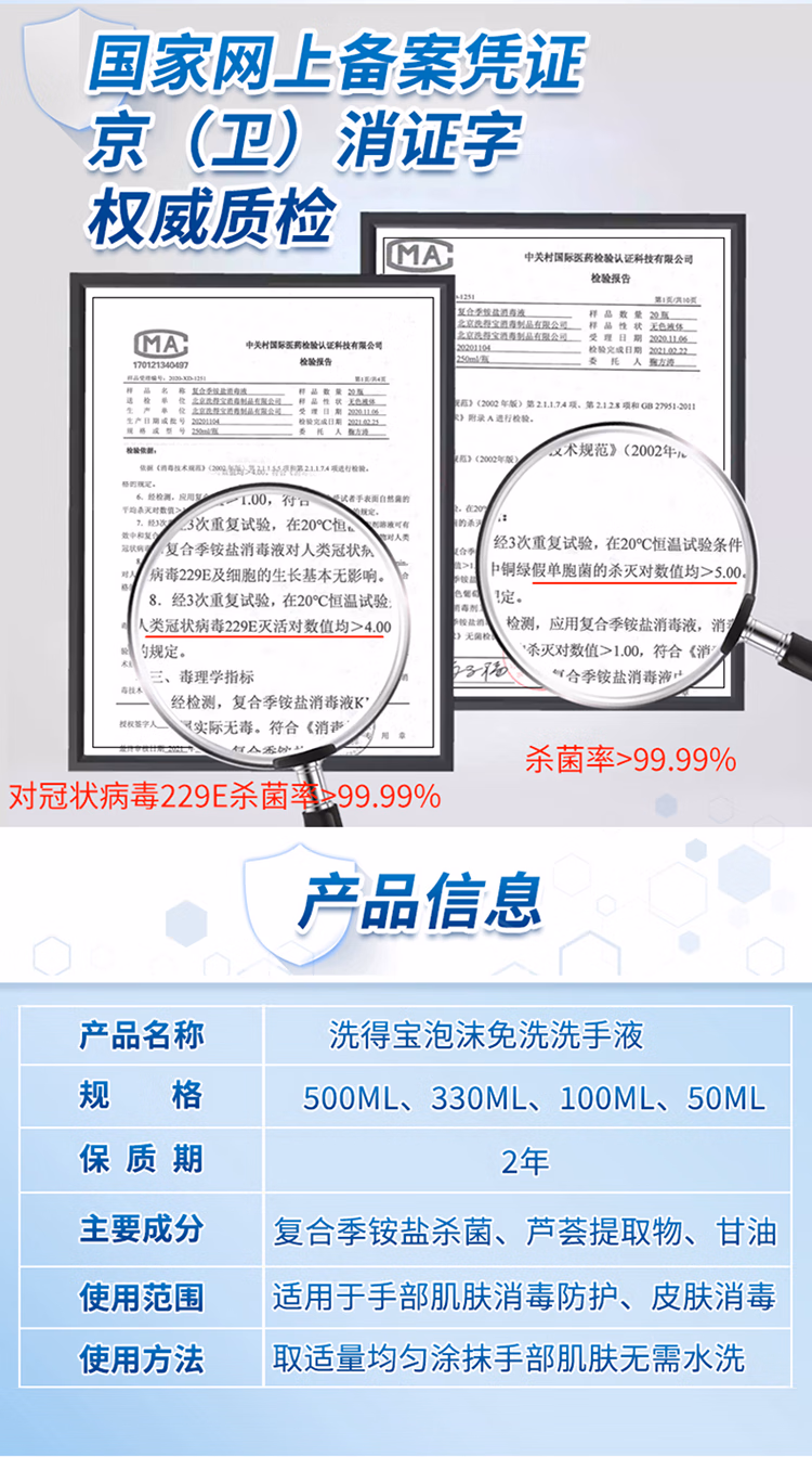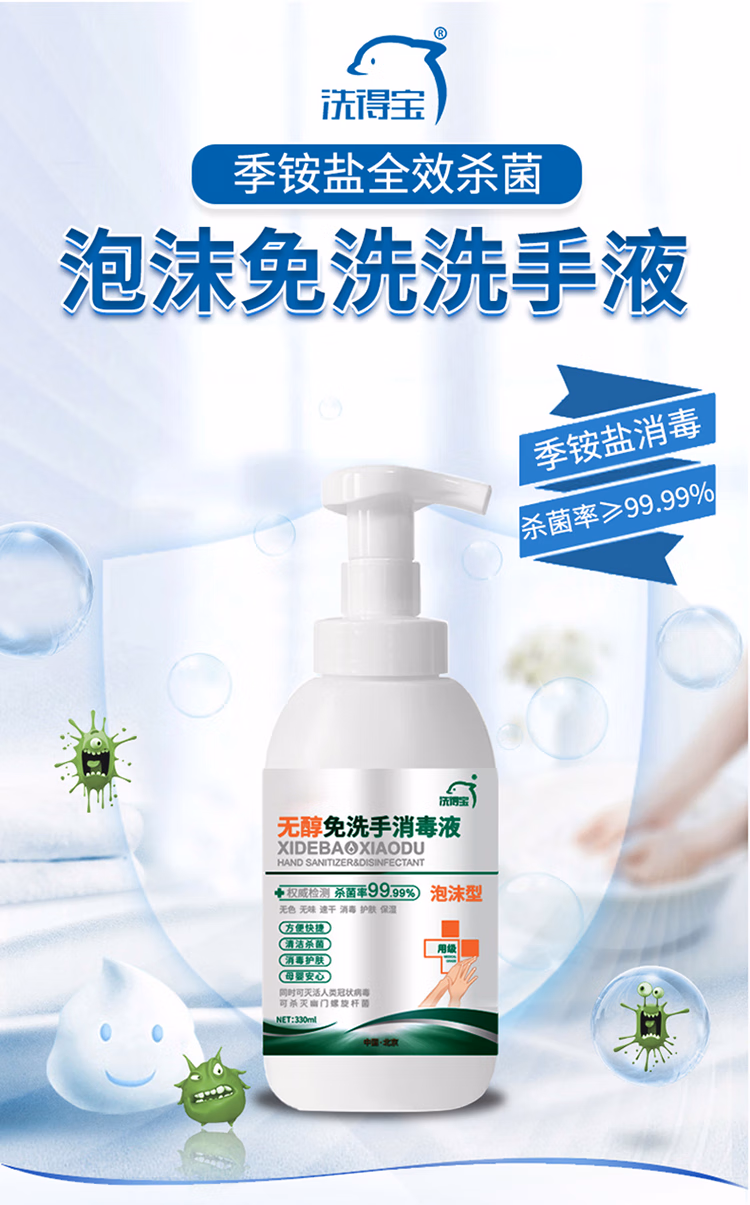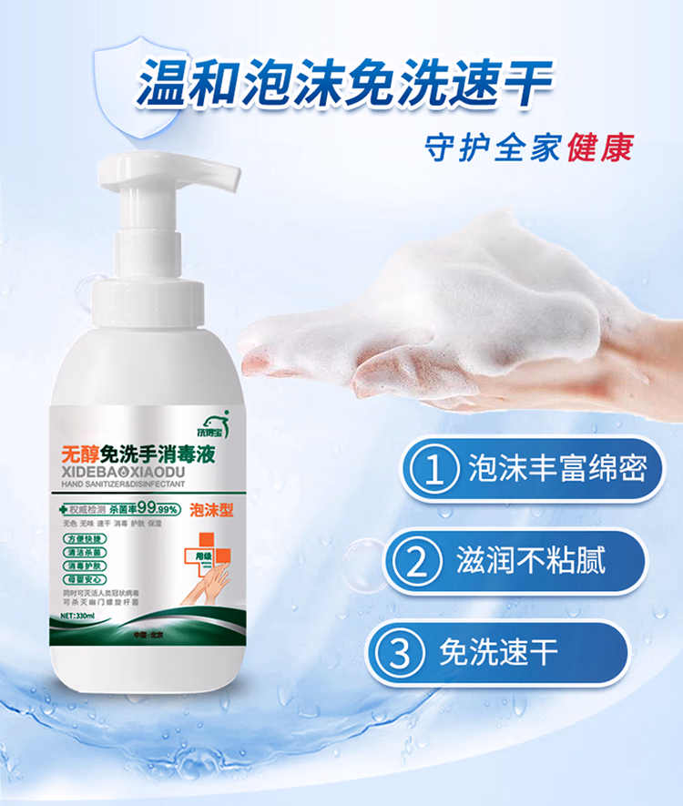 • 商品名称:洗得宝免洗洗手液 儿童便携家用免洗手消毒液330ml不含酒精无醇泡沫型