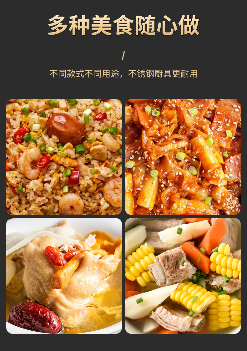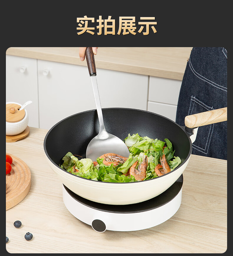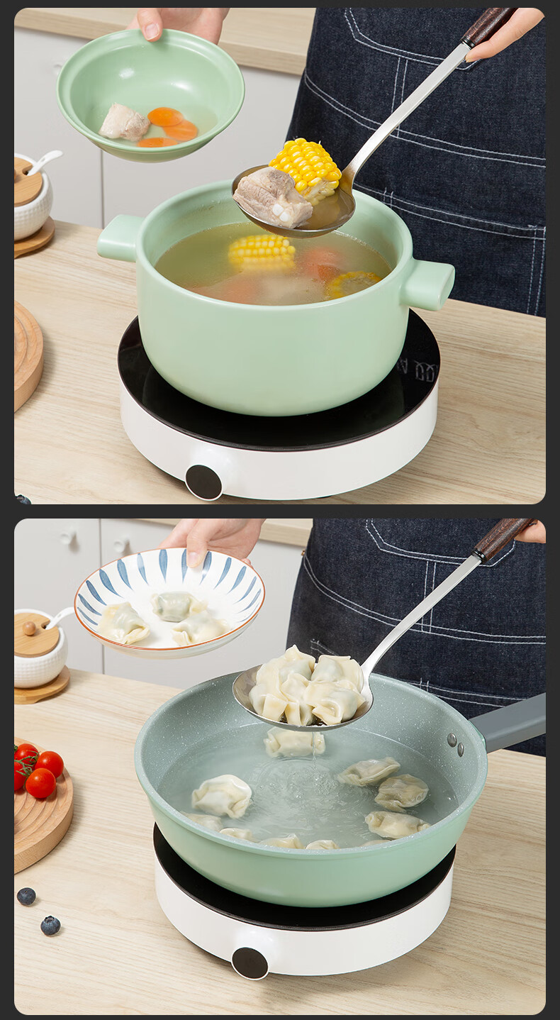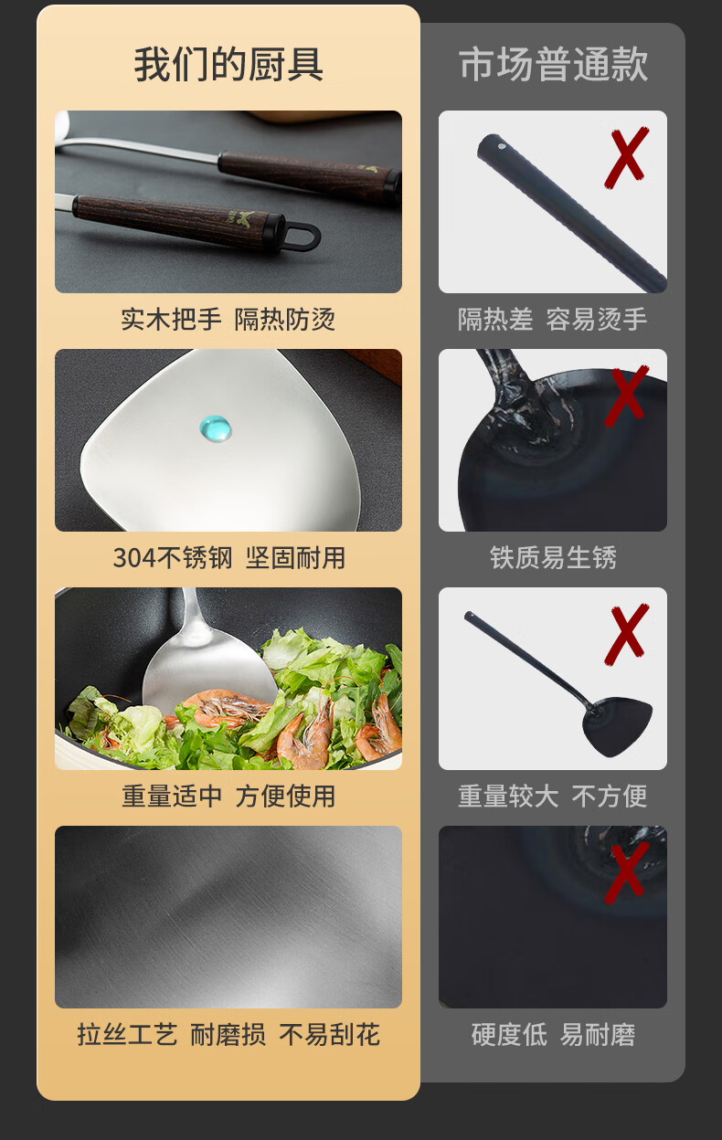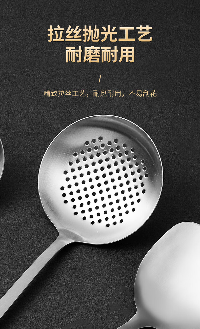 双枪304不锈钢锅铲炒菜铲子家用榉木手柄汤勺【加长】单位:个