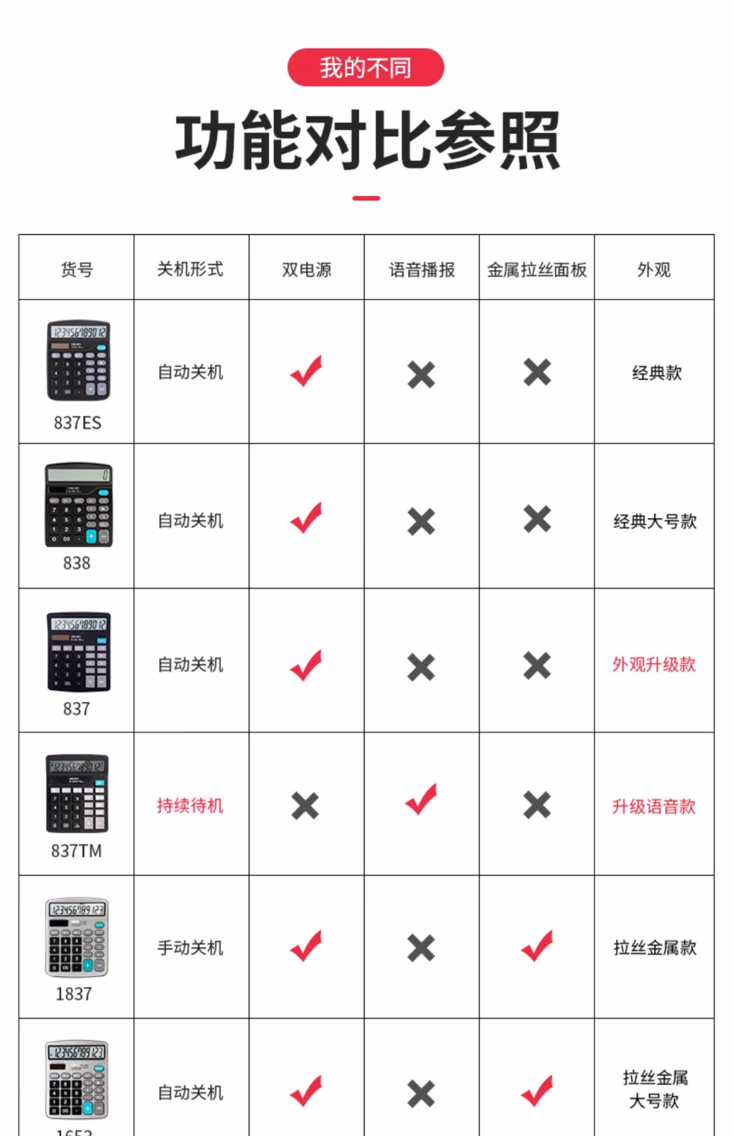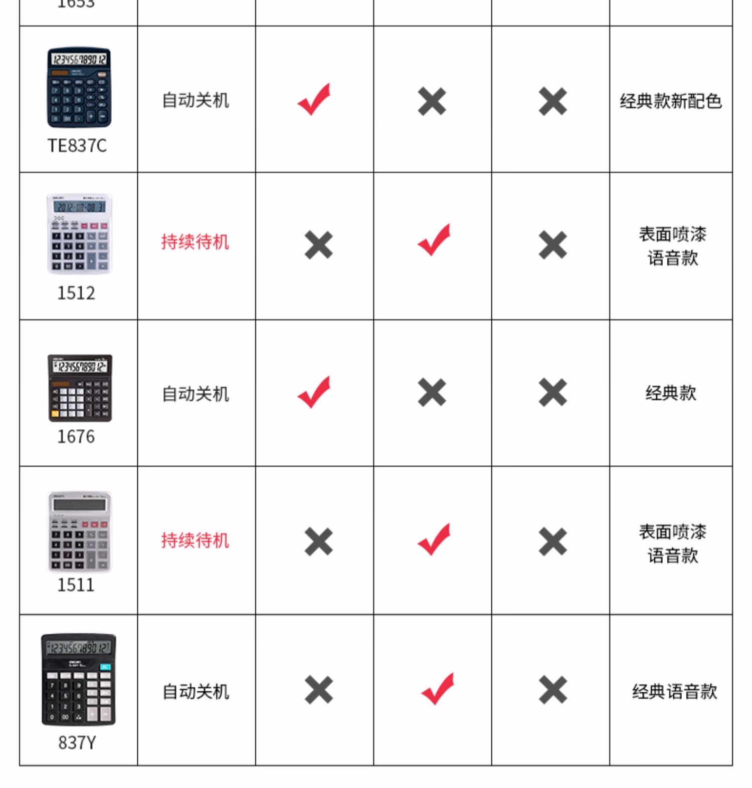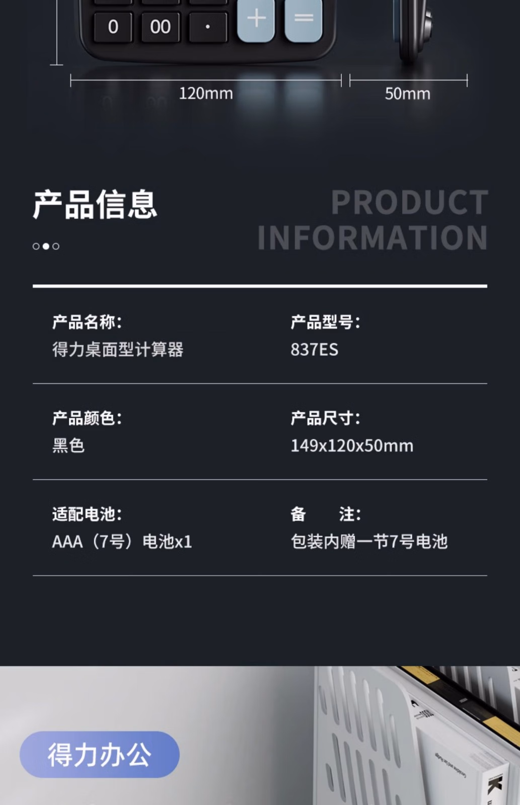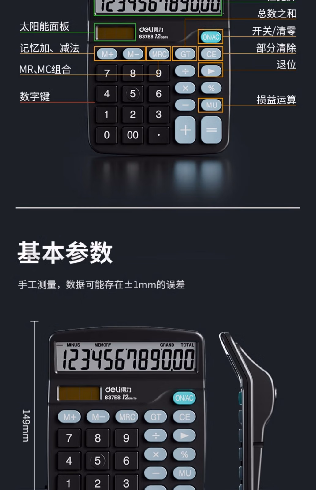• 商品名称:得力(deli)837双电源桌面办公计算器12位大屏幕会计用太阳能学生用财务小号便携桌面计算机 【牛奶白】双电源+非语音 TE837C