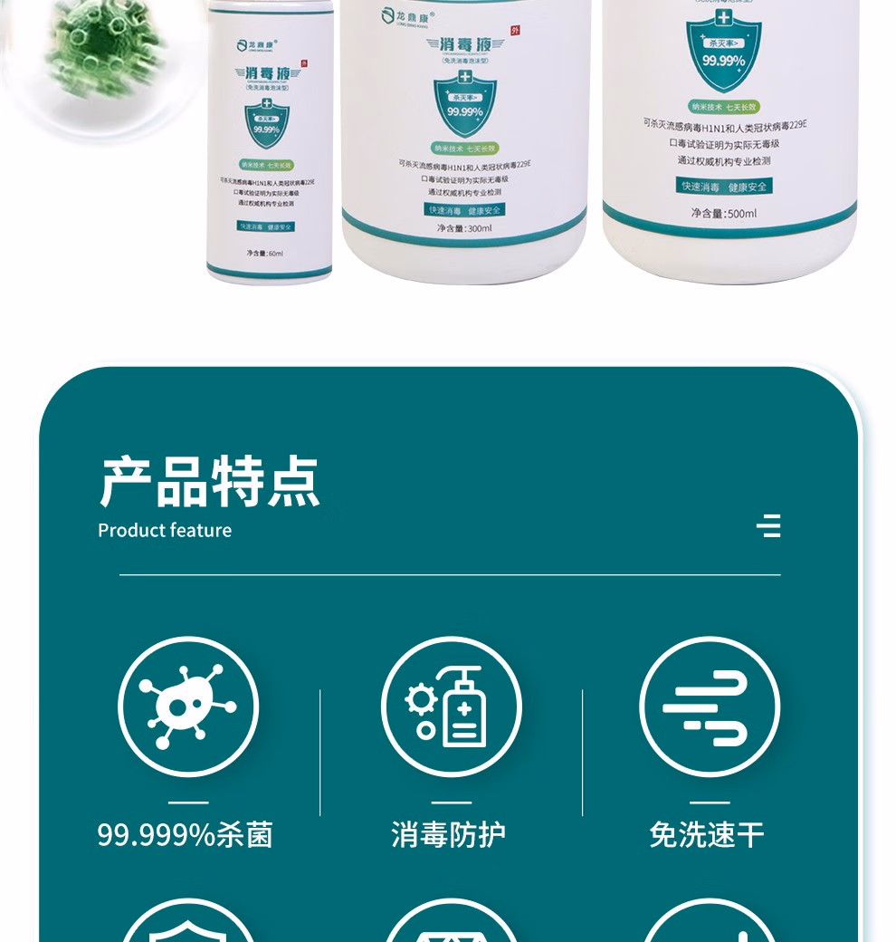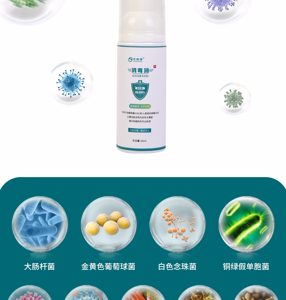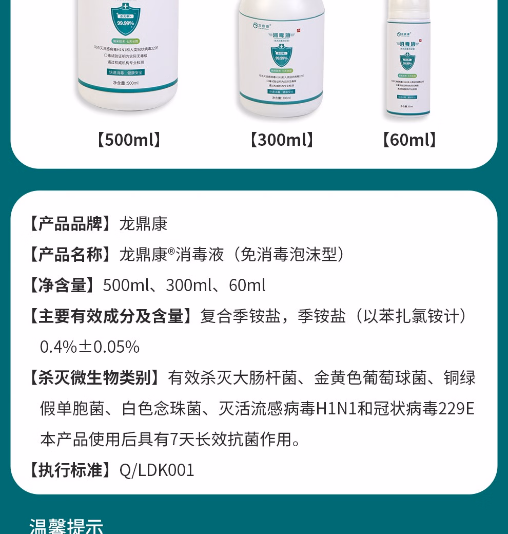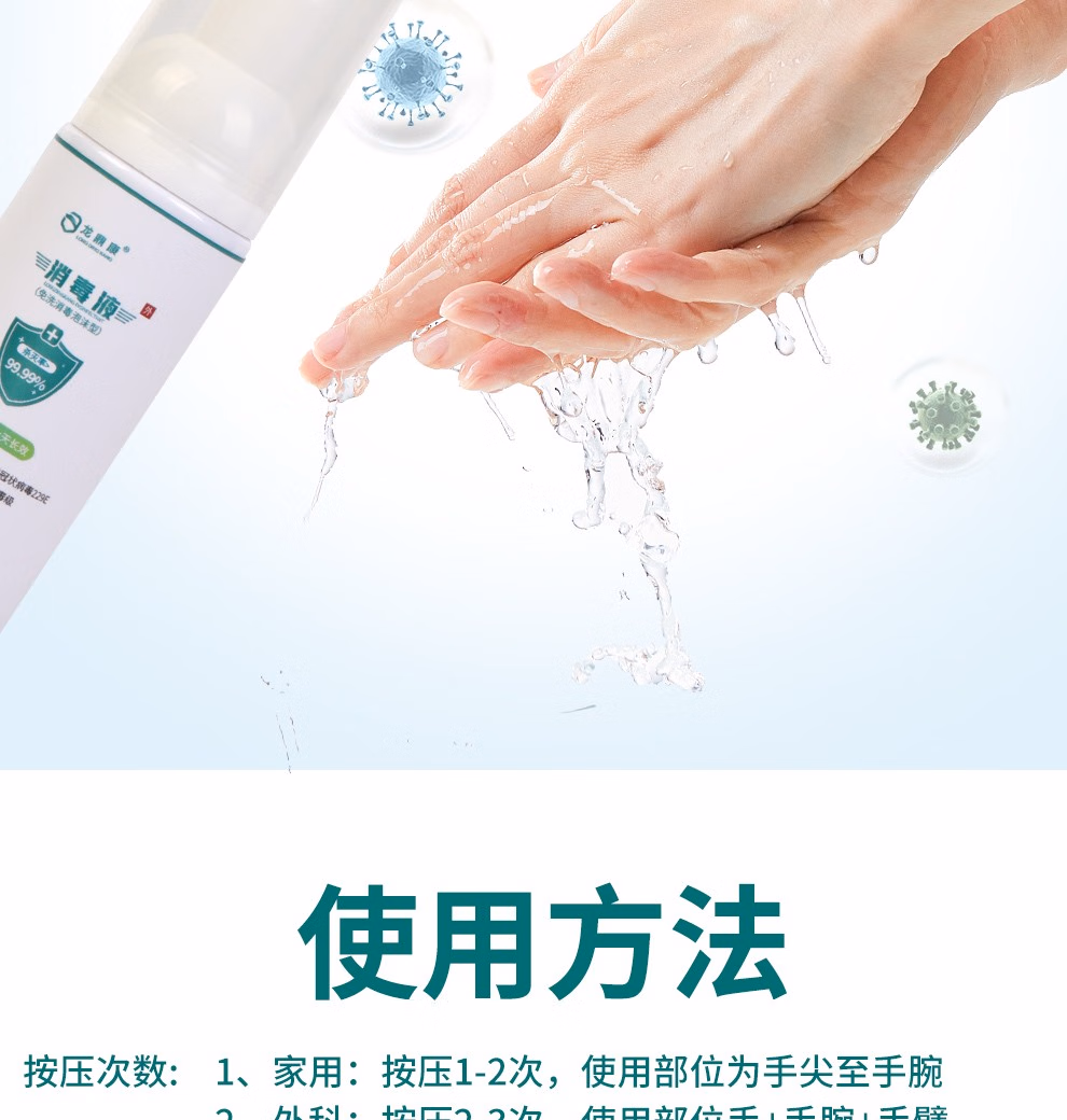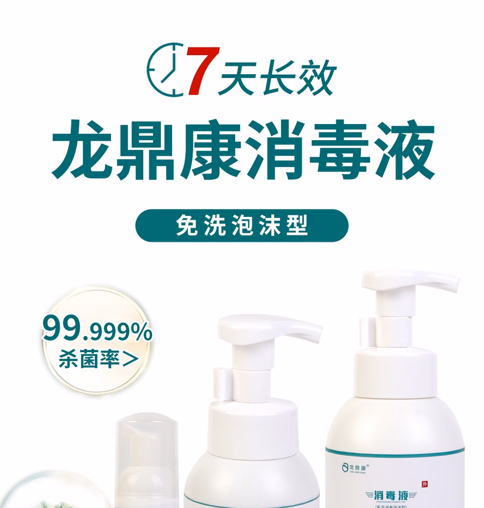 • 商品名称:龙鼎康消毒液(免洗泡沫型)温和敏感可用灭菌杀毒99.999%手部专用便携 消毒液500ml免洗泡沫型