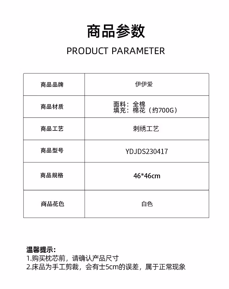 伊伊爱 YDJDS230417 46*46cm 700g 酒店棉花靠垫 (计价单位:件) 白色