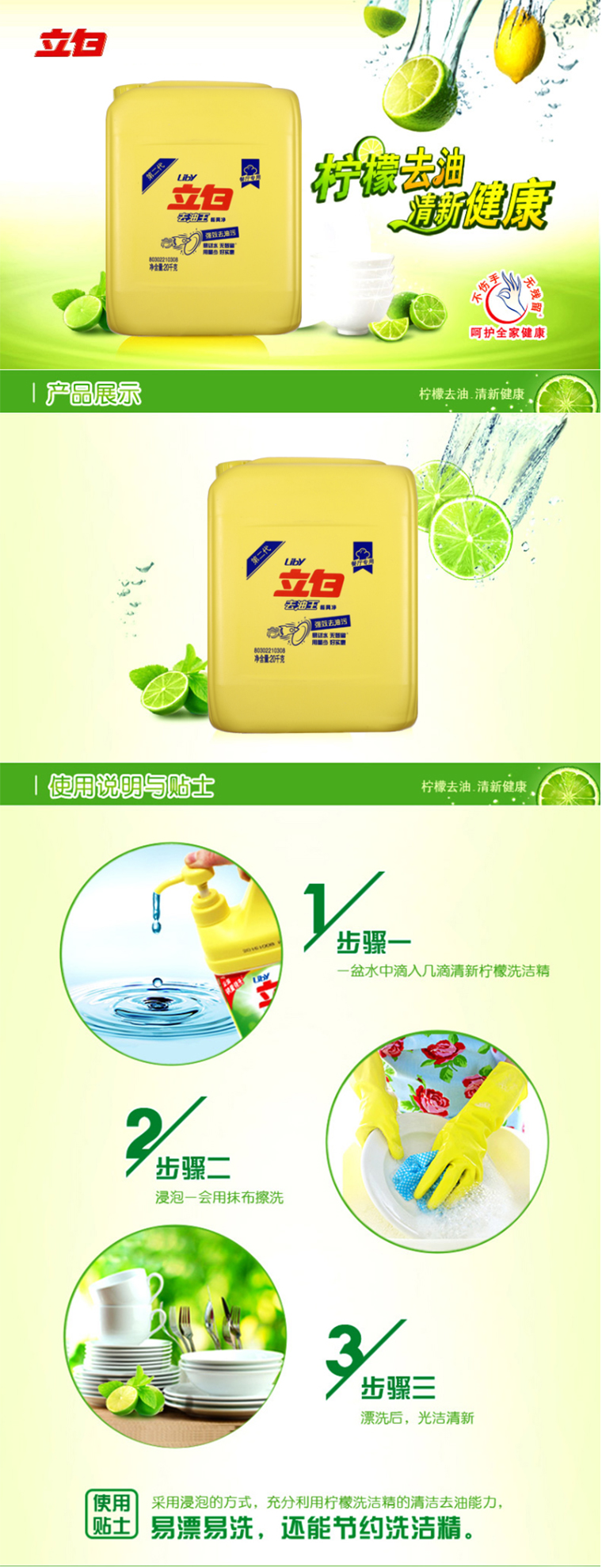 立白 Libai 20kg 洗洁精 柠檬 去油王 计价单位:桶