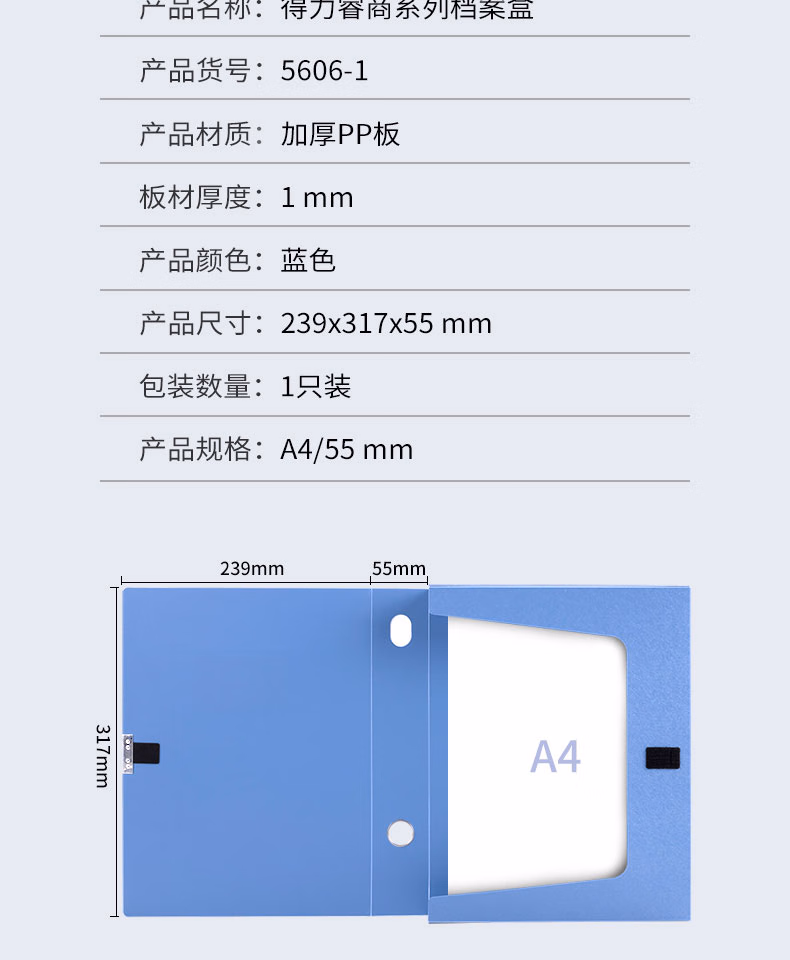得力 5605 A4 35mm 档案盒 (计价单位:个) 蓝色