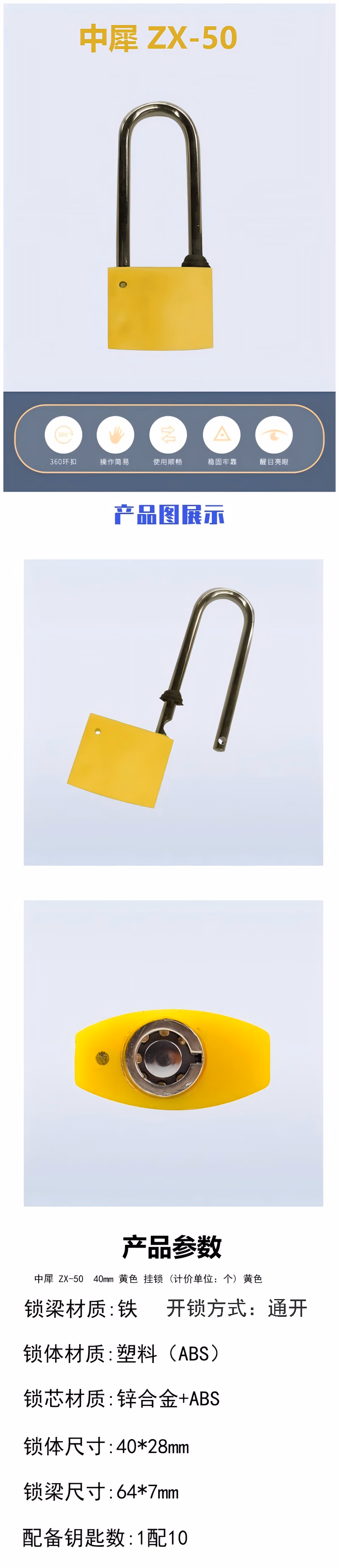 • 商品名称:中犀ZX-50 40mm 黄色 挂锁 (计价单位:个) 黄色