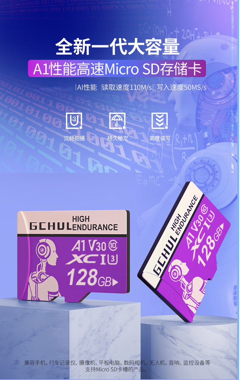 • 商品名称:杰储(GCHUL) TF1000 128G TF卡 存储卡 (计价单位:个) 灰色