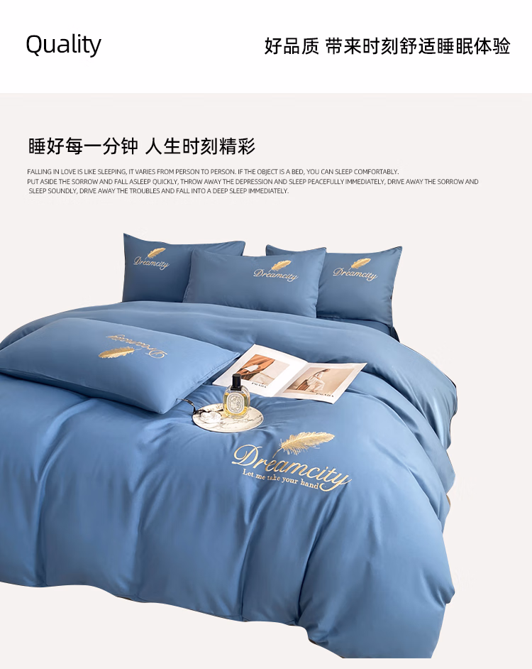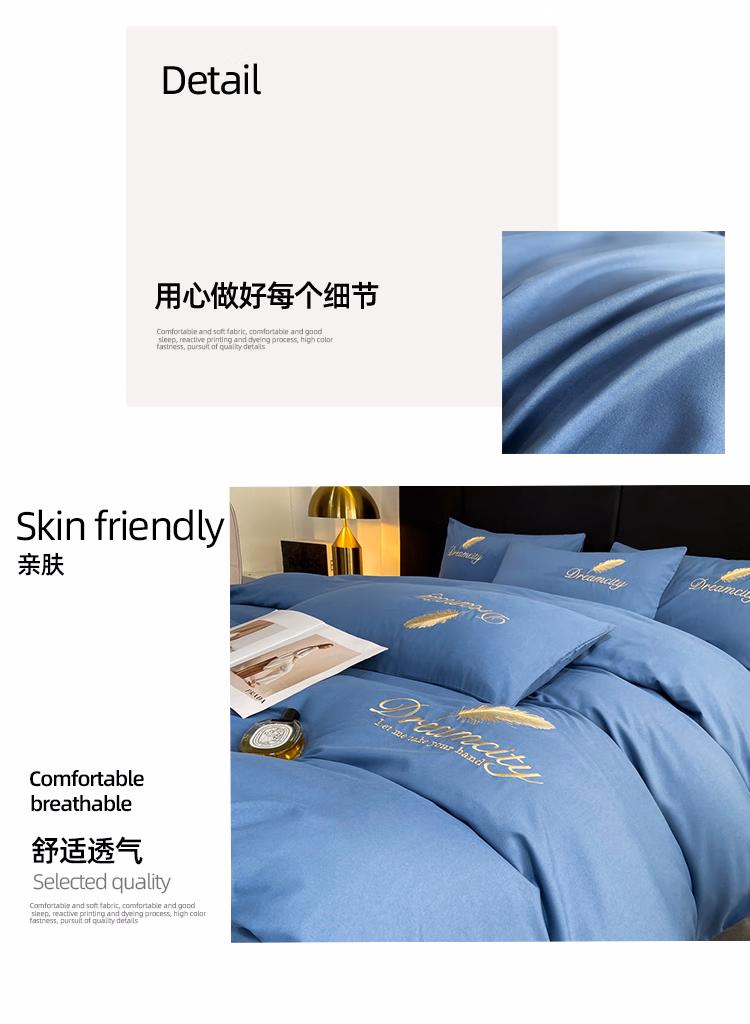 伊伊爱 TJ0RY02401191 200*230cm 水洗棉磨毛纯色刺绣羽毛系列四件套 床上套件 (计价单位:套) 羽毛-宾利蓝