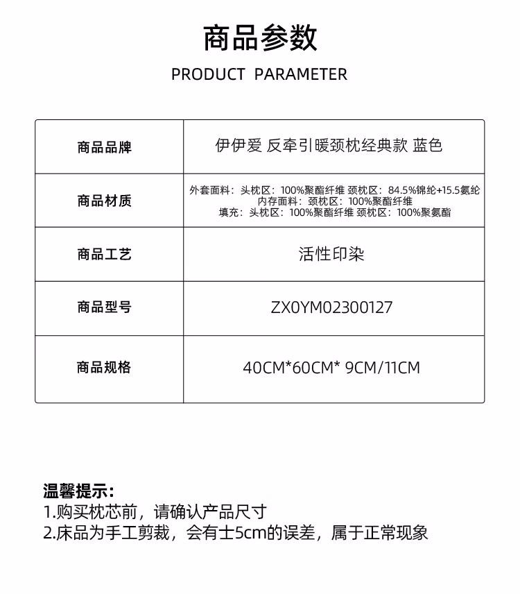 伊伊爱 ZX0YM02300127 /40*60*9/11cm 反牵引暖颈枕经典款 1.00 件/个 (计价单位:个) 蓝色