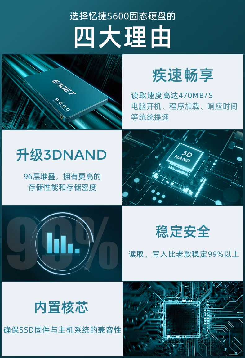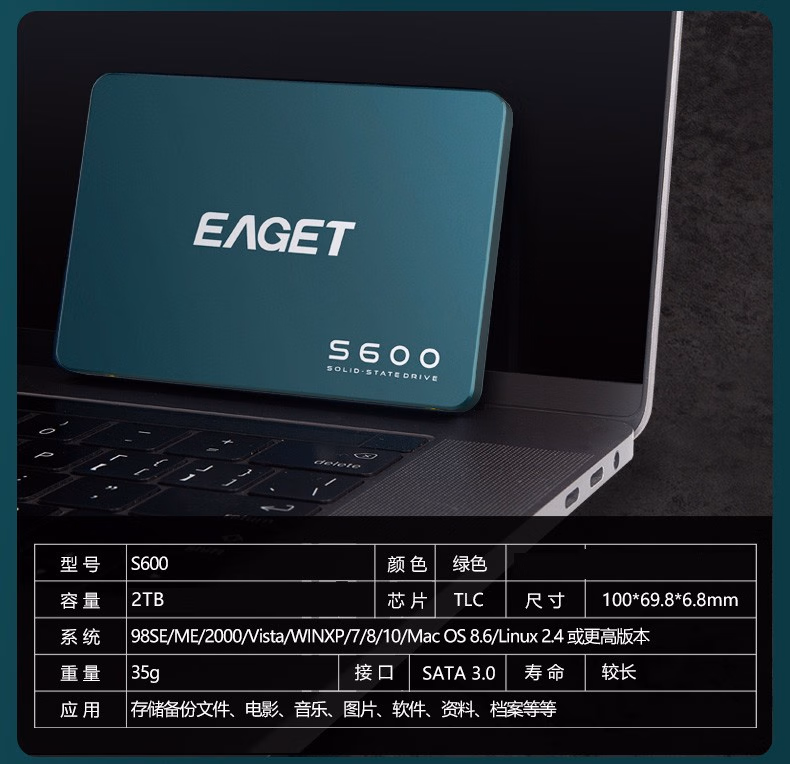 忆捷(EAGET) S600-2TB 100*69.8*6.8mm、35g、2.5寸 SATA3 固态硬盘 (计价单位:个) 绿色