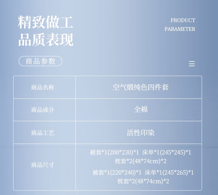 伊伊爱 TJ0SZ02201464 /220*240cm纯色纯棉空气缎四件套 床上套件 (计价单位:套) 豆乳白