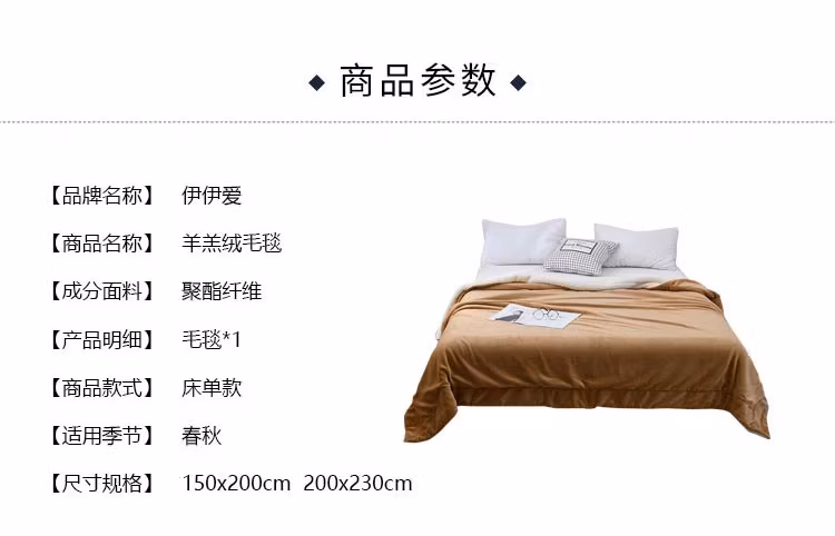 伊伊爱 MT-8FLR-01 /150*200cm 秋冬保暖芬兰绒毯加厚双层毛毯 1.00 件/条 (计价单位:条) 驼色