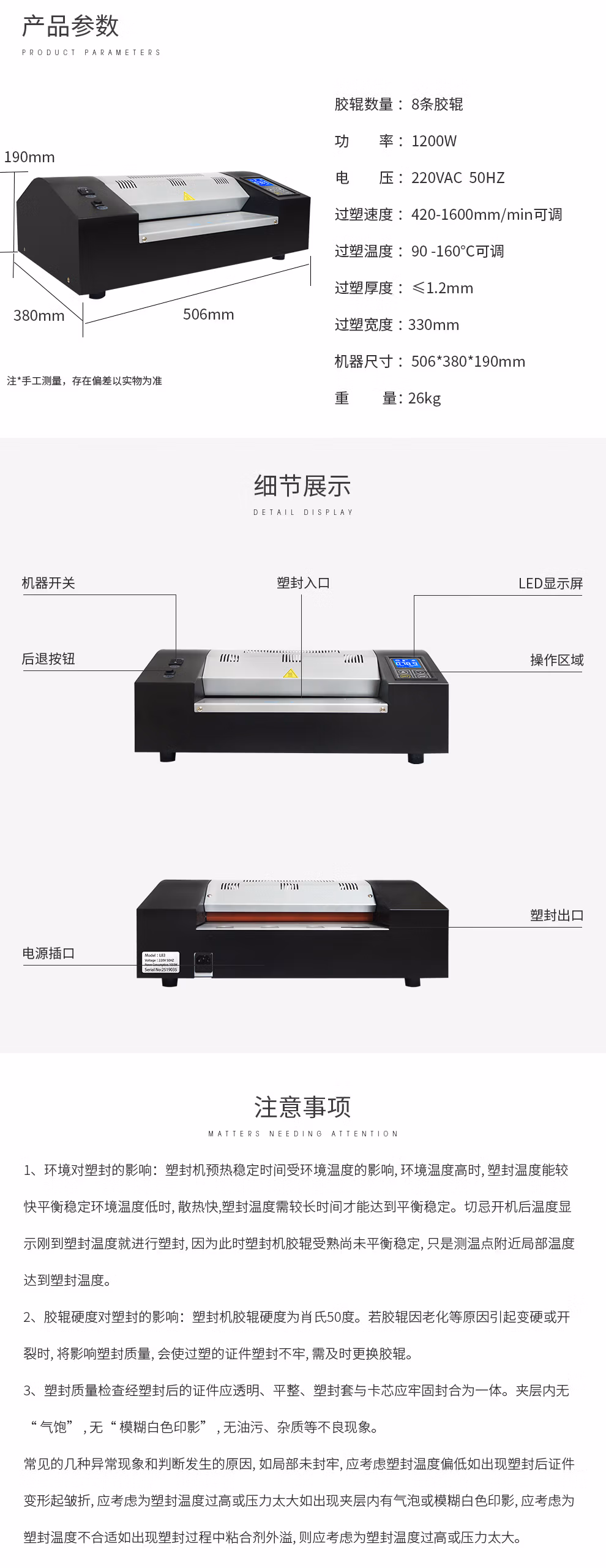 优玛仕(U-MACH) U-8330 8辊 塑封机 (计价单位:台) 黑色