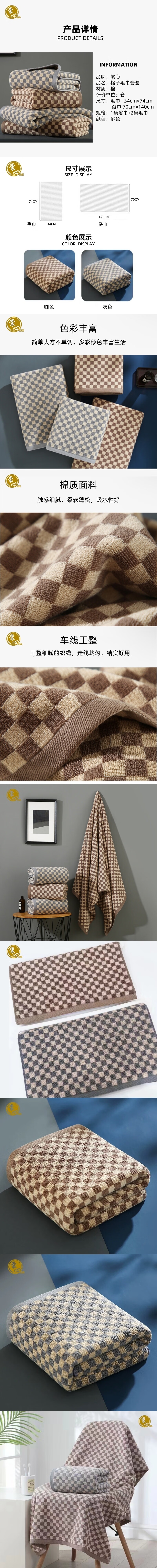 裳心 浴巾1条+毛巾2条 格子毛巾套装 毛巾 3.00 条/套 (计价单位:套) 咖啡灰