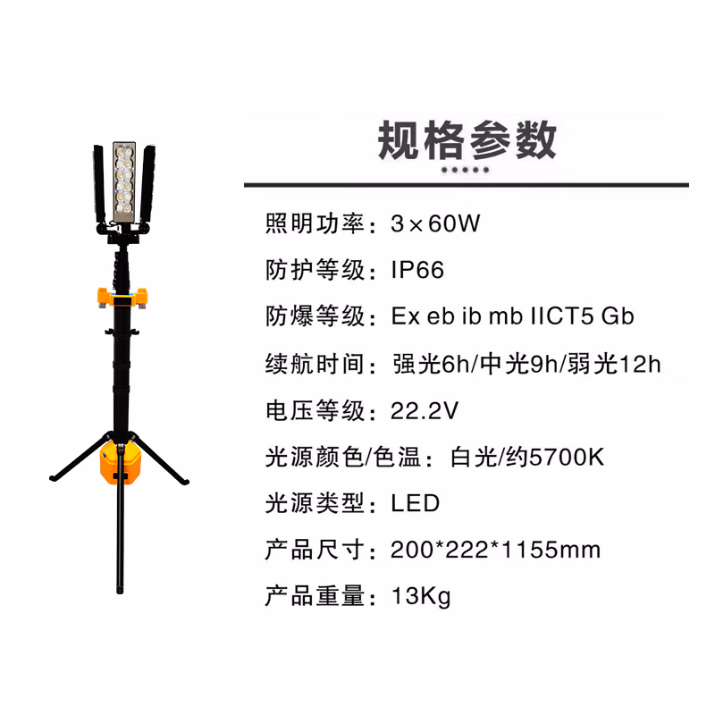 光源速 GYS6129 22.2V 180W IP66 6000K 全景防爆移动照明装置 (计价单位:台) 黄色