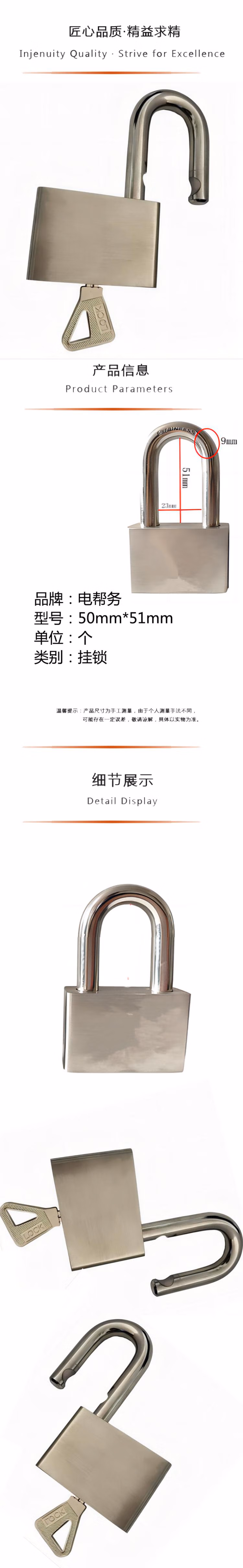 电帮务 50mm*51mm 弧形长梁51mm 挂锁 (计价单位:个) 银色