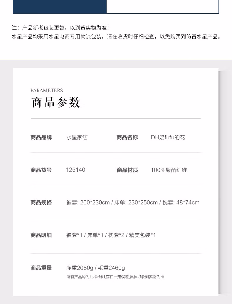 • 商品名称:水星家纺床上用品四件套DH【线下专柜同款】 锦瑟未央 床单款 200cm×230cm/条