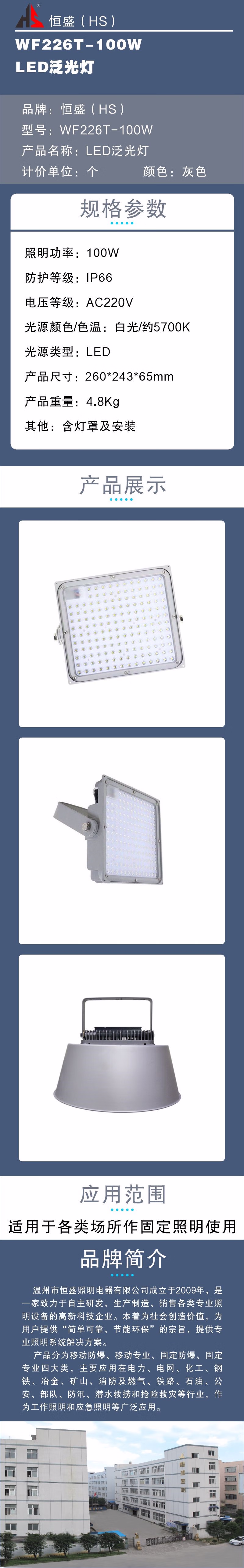 恒盛(HS) WF226T-100W 100W、IP66、电压等级:AC220V、白光/约5700K、LED、(含灯罩安装) LED泛光灯 (计价单位:个) 灰色