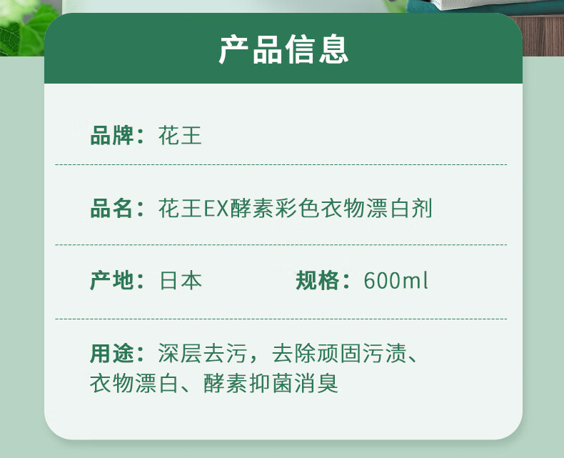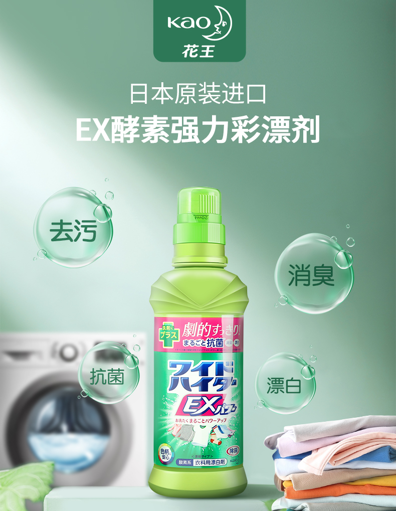 花王(KAO)彩漂剂 漂白水 漂白剂 漂渍液 衣物去黄渍 原装日本进口 600ml 单位:瓶
