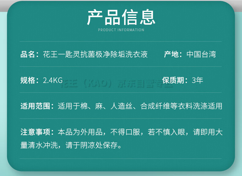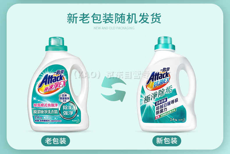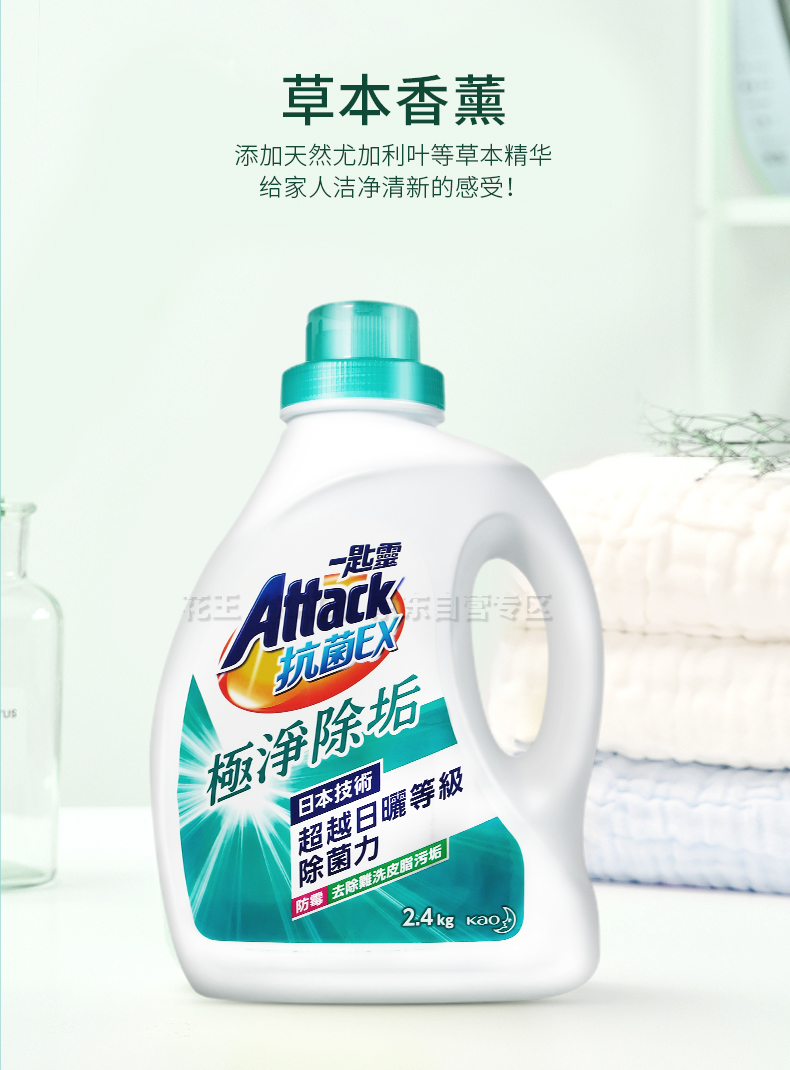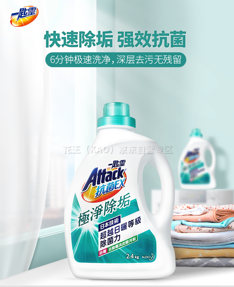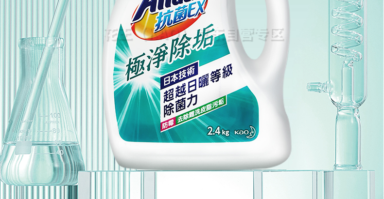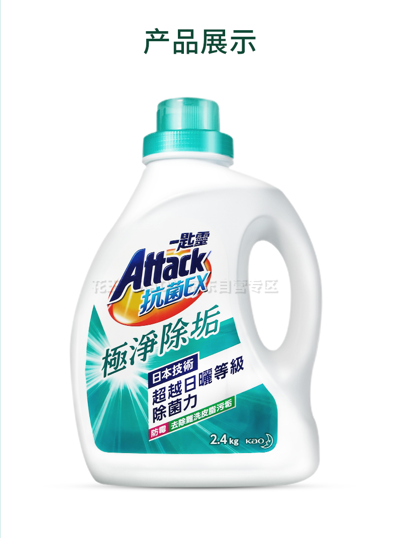 花王(KAO)进口洗衣液机洗手洗内衣内裤洗衣液持久留香有效除菌极速净2.4kg 单位:瓶
