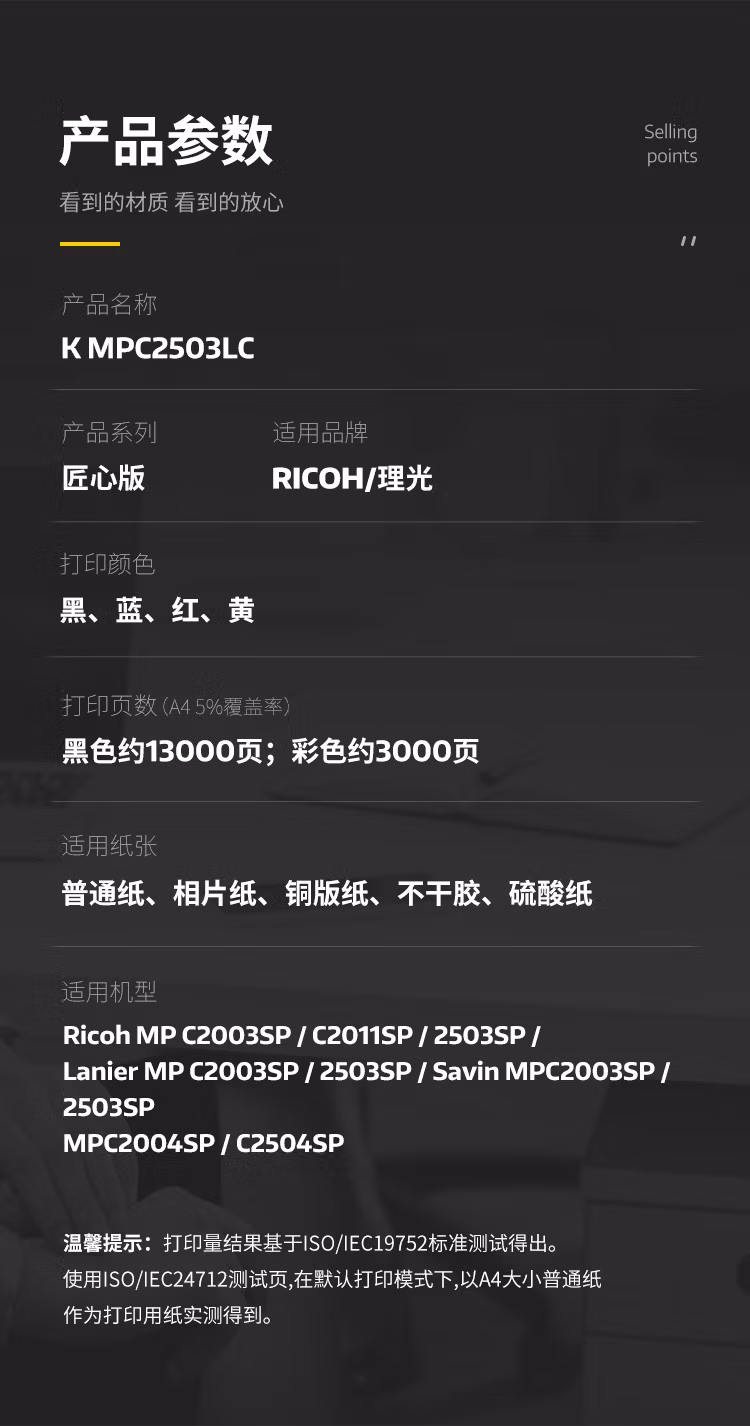 • 商品名称:科思特 K MPC2503粉盒 适用理光 C2003SP C2004SP C2011SP C2503SP MPC2503HCC 蓝色 9000页 专业版