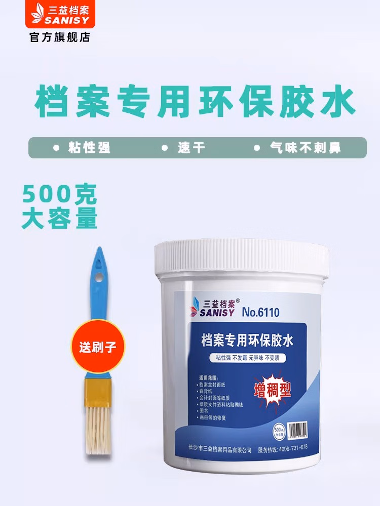 三益档案(SANISY) 6110 500ml 档案专用环保 胶水 1.00 个/瓶 (计价单位:瓶) 白色
