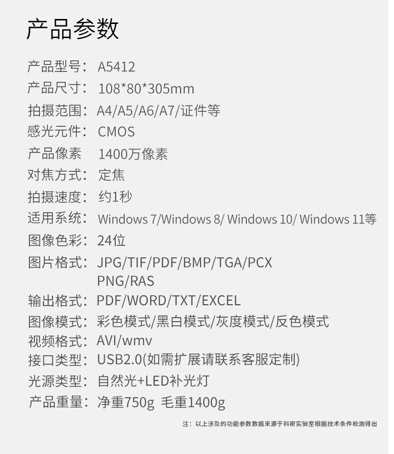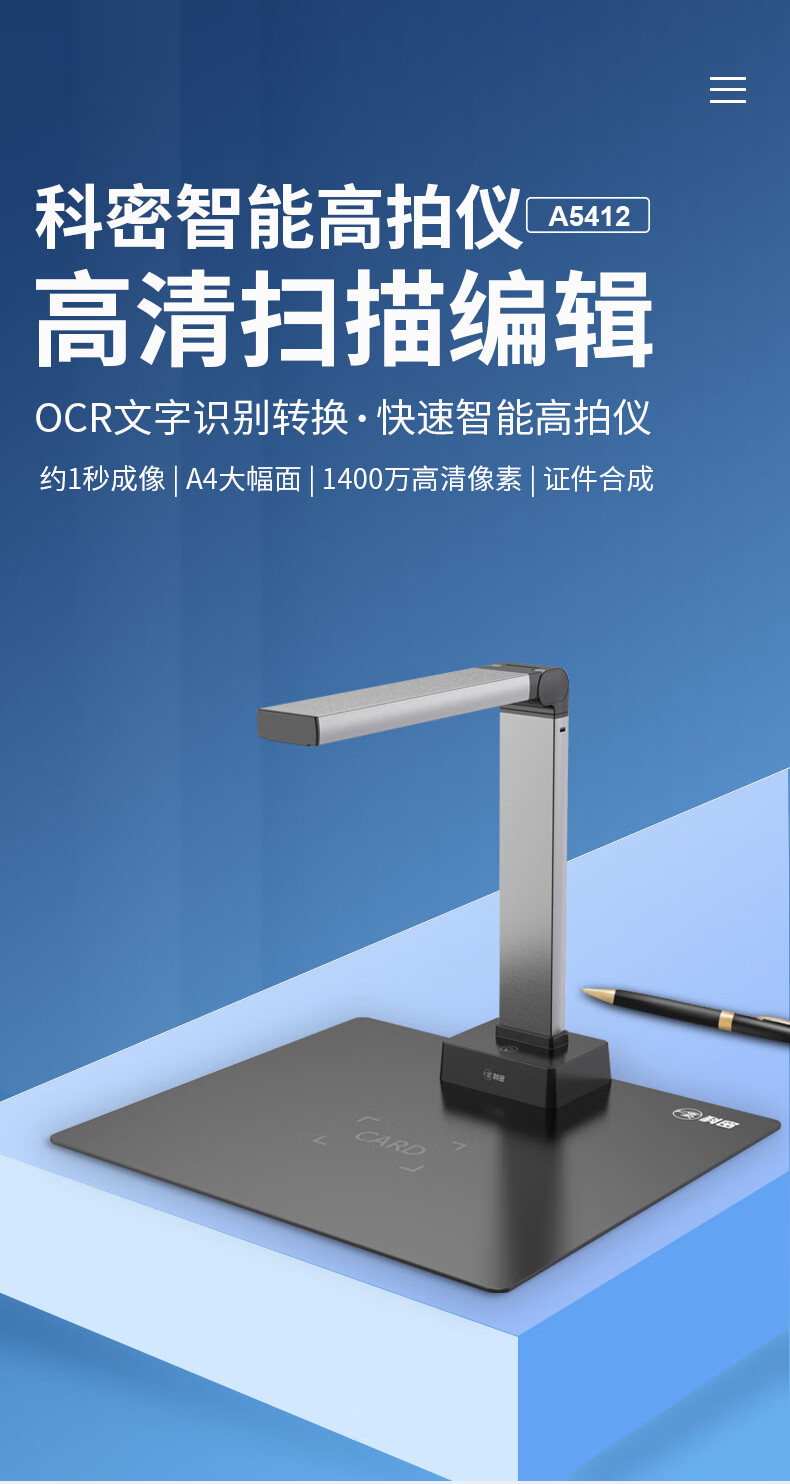科密(comet) A5412 高拍仪 1400万像素扫描仪 A4文件资料编辑优化 OCR图文识别 统信麒麟国产系统二次开发 单位:台