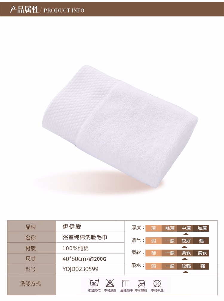 • 商品名称:伊伊爱浴室纯棉洗脸毛巾 白色 40*80cm/YDJD0230599