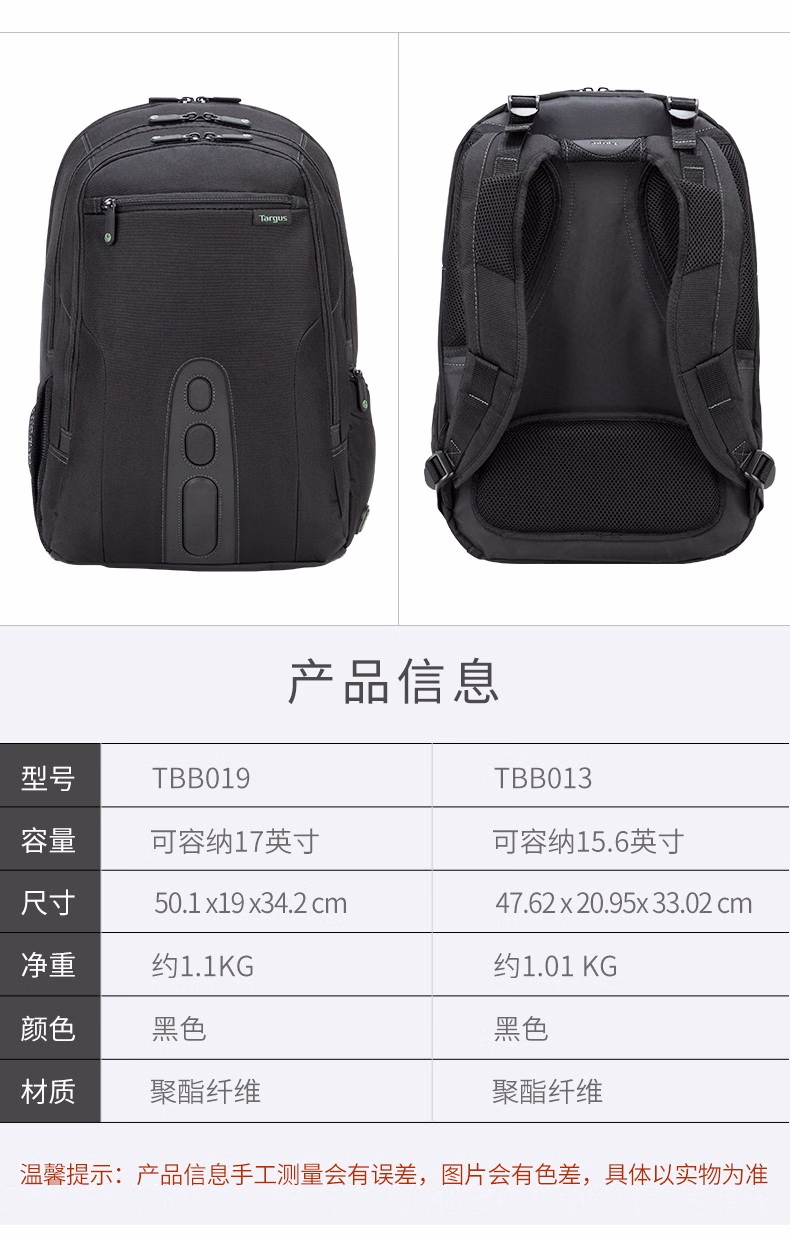 泰格斯(Targus) TBB013 15.6英寸 双肩包 (计价单位:个) 黑色