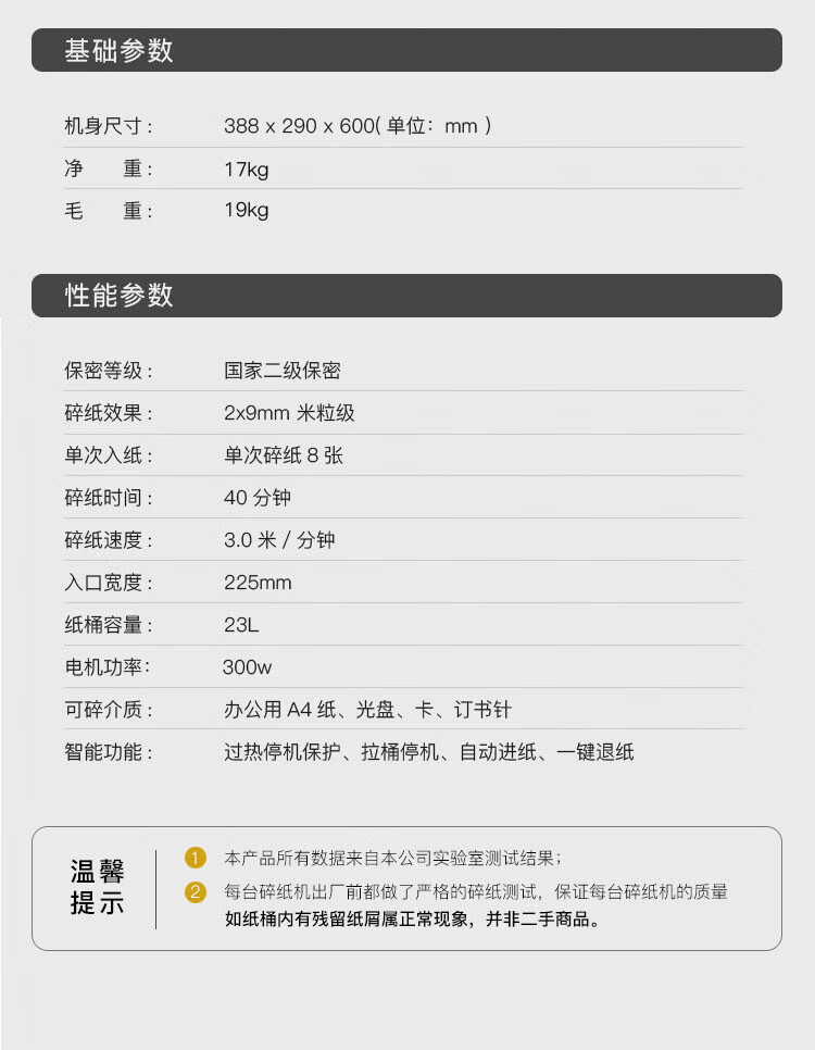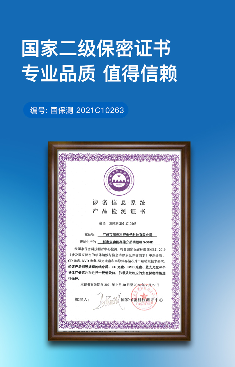 科密(comet)S-520D 国家二级保密认证办公商用碎纸机(单次8张 持续40分钟 23L 可碎卡、光盘、订书针)单位:台