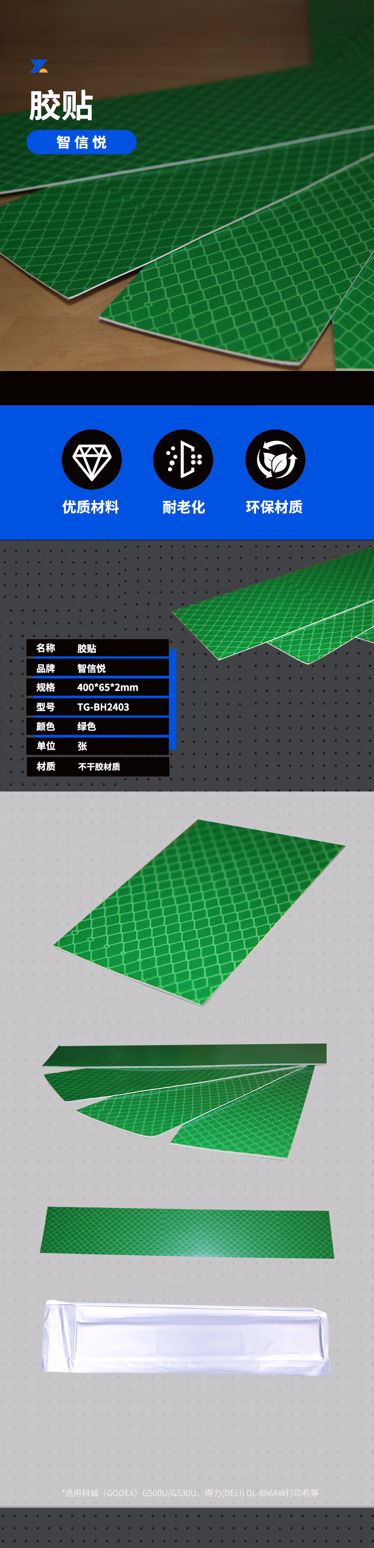 智信悦 TG-BH2403 400*65*2mm 胶贴 1.00 卷/张 (计价单位:张) 绿色
