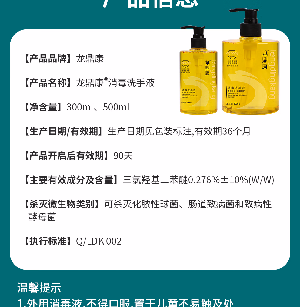 龙鼎康 抗菌 300ml 洗手液 (计价单位:瓶) 黄色