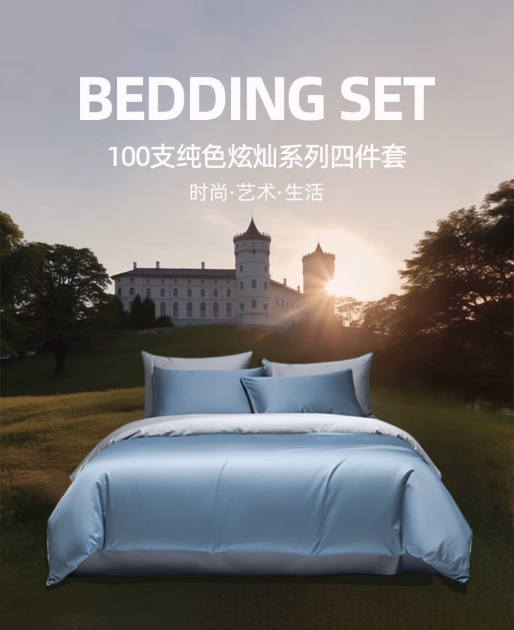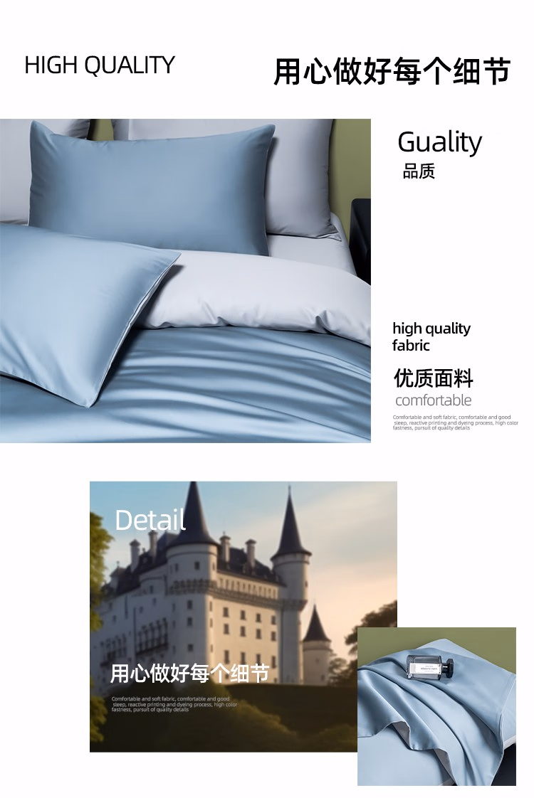 伊伊爱 TJ0HJC2301965 /200*230cm 炫灿100支四件套 (计价单位:套) 天际蓝拼钛银